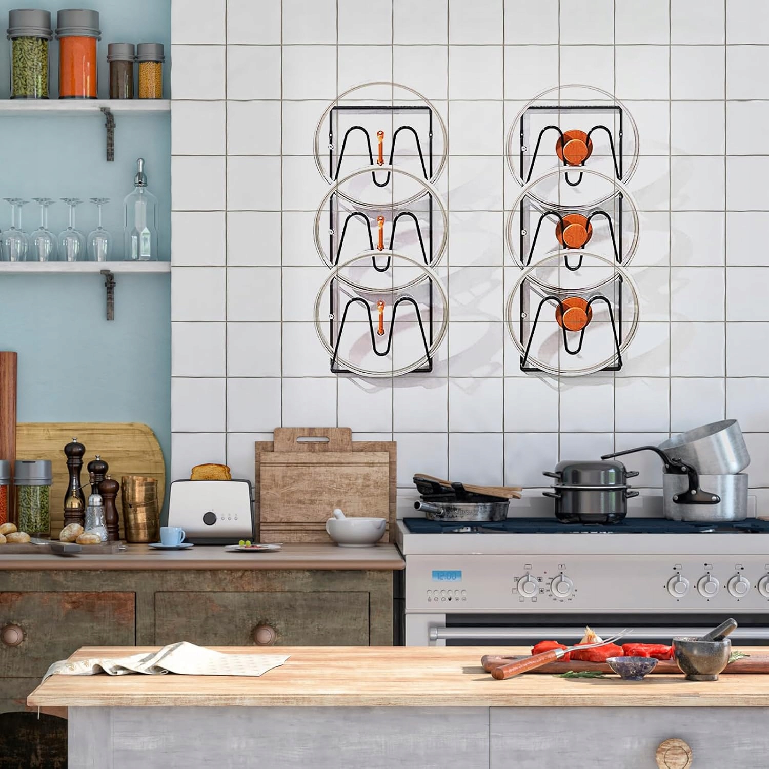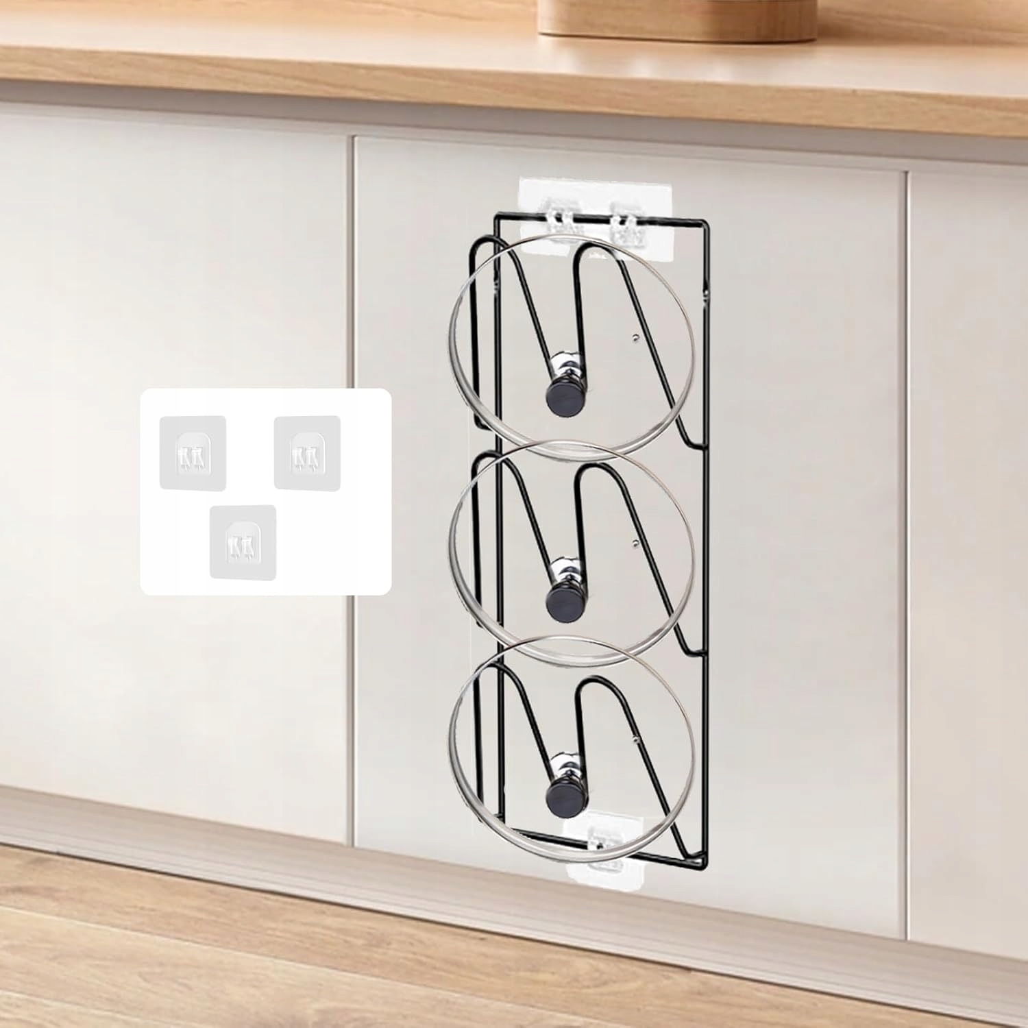 ✅Просторный дизайн: Эта практичная кухонная полка вмещает до 6 разных крышек одновременно, помогая поддерживать порядок на кухне и в аксессуарах.