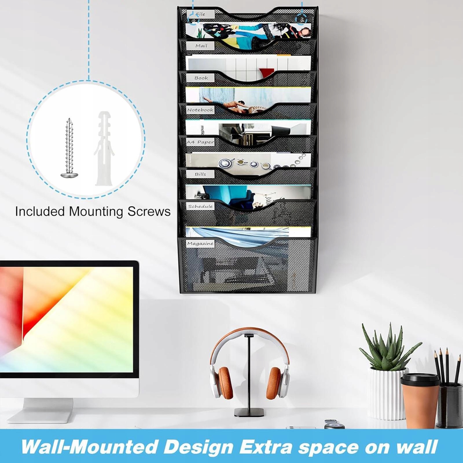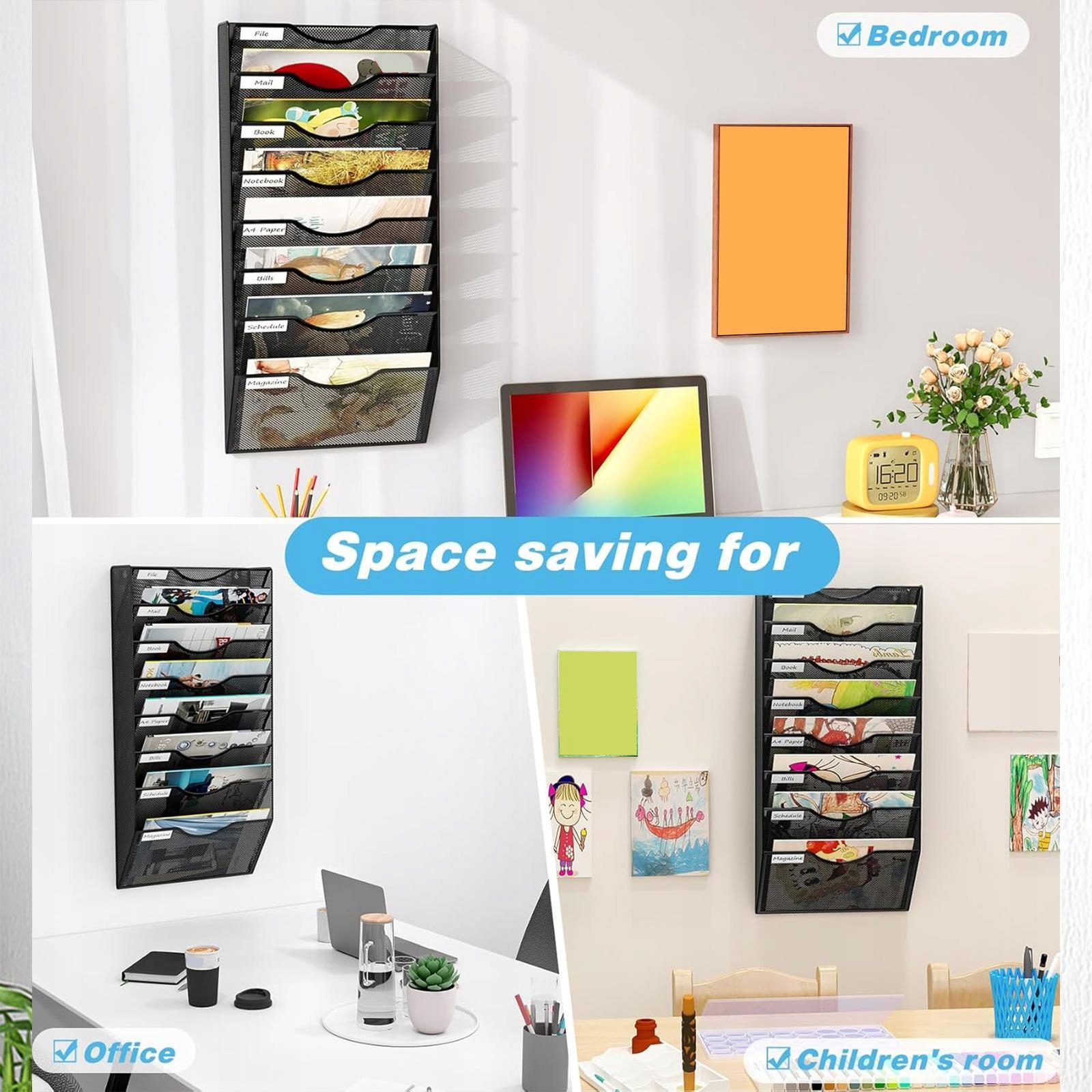 [application] Multi -purpose stand for mounting files on the wall with multi -layer sorting sockets for sorting file sorting, documents, magazines, literature, catalogs, mail, brochures, envelopes and notebooks, paper storage, etc.