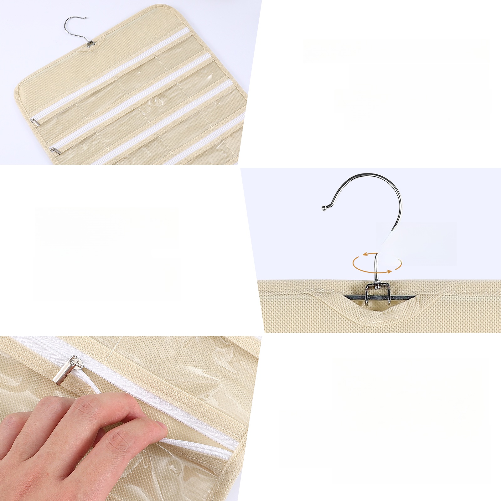 ✅ Благодаря вращающейся металлической вешалке этот карман украшений можно повесить в шкафу, на стене или крючке на двери. Это стройное и компактное, как рубашка.