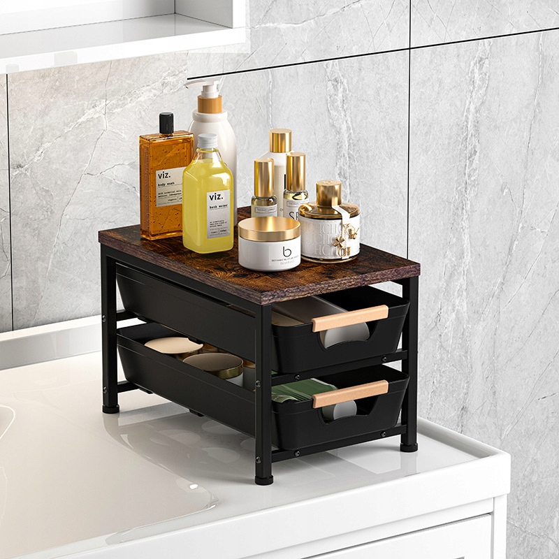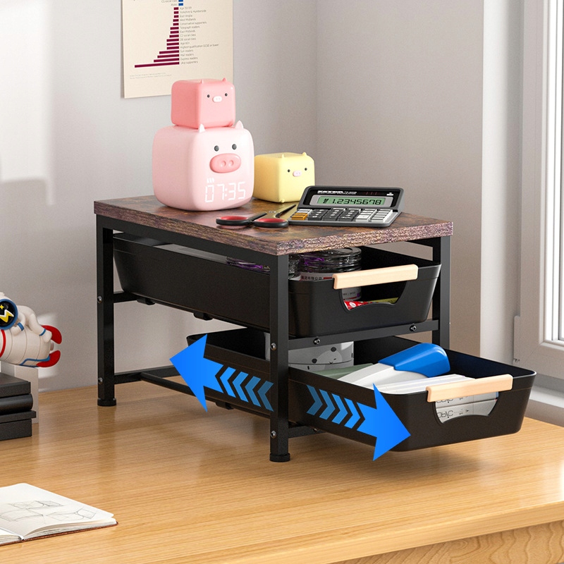 Содержите свой стол в порядке благодаря современному органайзеру с деревянной столешницей и двумя практичными ящиками. Этот стильный органайзер сочетает в себе промышленный дизайн и функциональность: деревянная столешница в деревенском стиле идеально сочетается с черной стальной рамой и выдвижными пластиковыми ящиками с деревянными ручками.