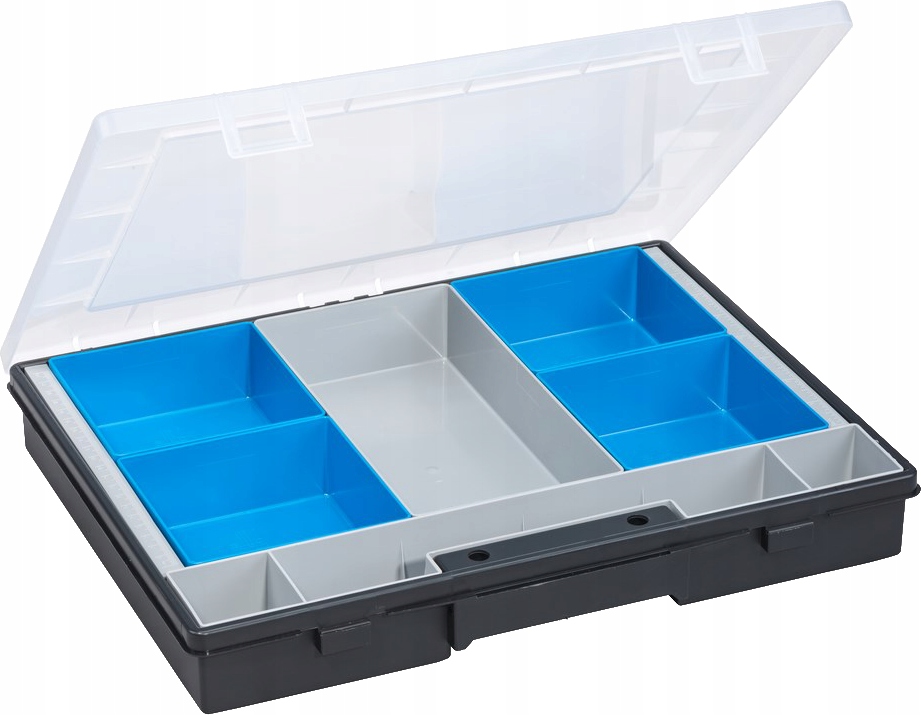 Организатор с внутренними контейнерами, размером 370 x 290 x 50 мм, является практическим и экономичным решением для хранения небольших инструментов, монтажных аксессуаров или других элементов. Изготовленный из прочного полипропилена, он обеспечивает удобство использования благодаря прозрачной крышке и твердым защелкам. Набор включает в себя 5 внутренних контейнеров, которые можно свободно настроить по мере необходимости