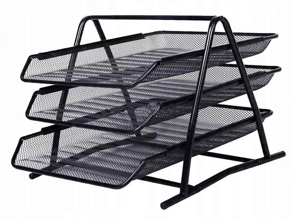 Настольный органайзер для документов, выполненный из легкой сетчатой металлической конструкции, позволит содержать офисные документы в порядке. Его можно использовать для хранения книги и школьные тетради.