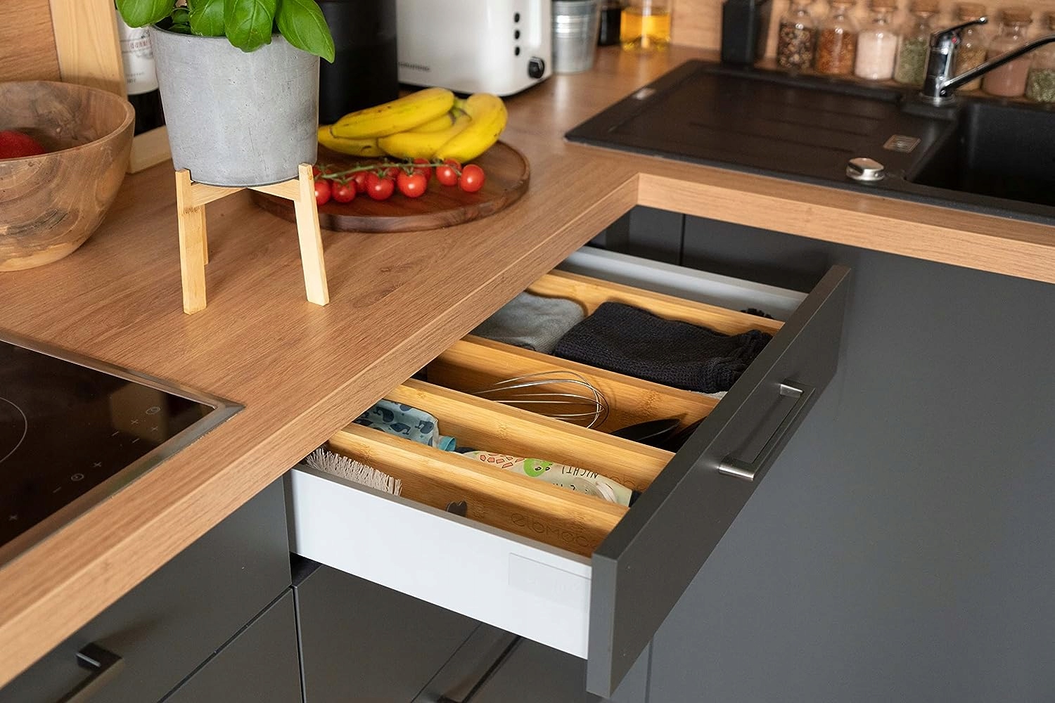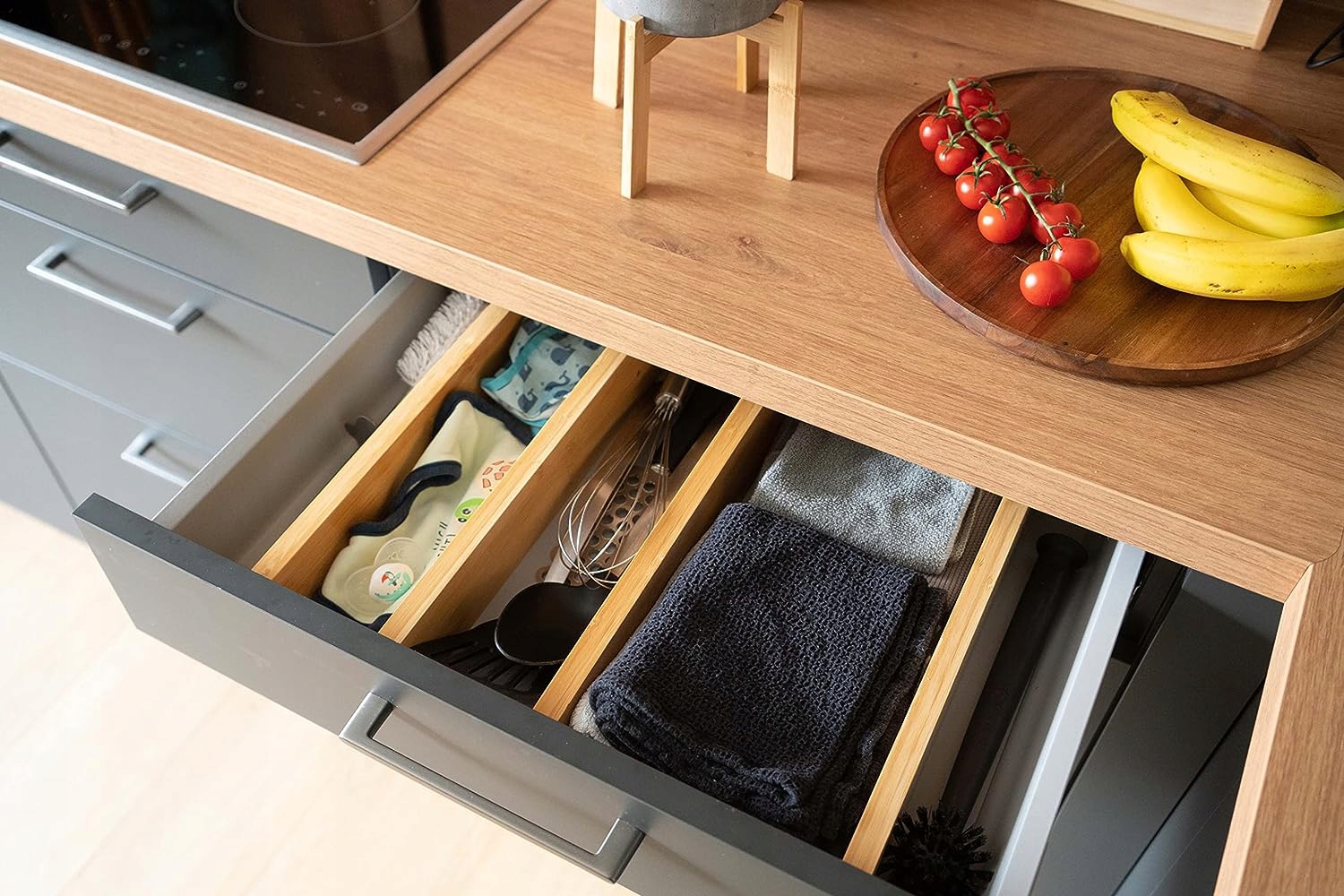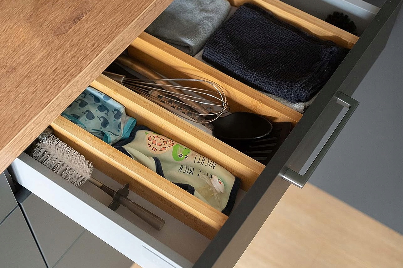 - Кухонные аксессуары - Разделители позволяют для организации различных аксессуаров, таких как кухонные полотенца, консервные ножи и т. д.