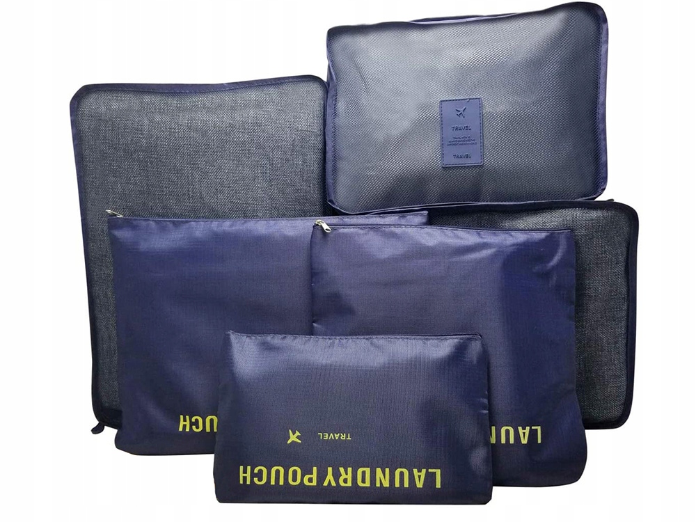 Набор из шести дорожных органайзеров, идеально подходящий для упаковки всех необходимых вещей, таких как: нижнее белье, обувь, одежда или косметика, а также для хранения нижнего белья для стирка .