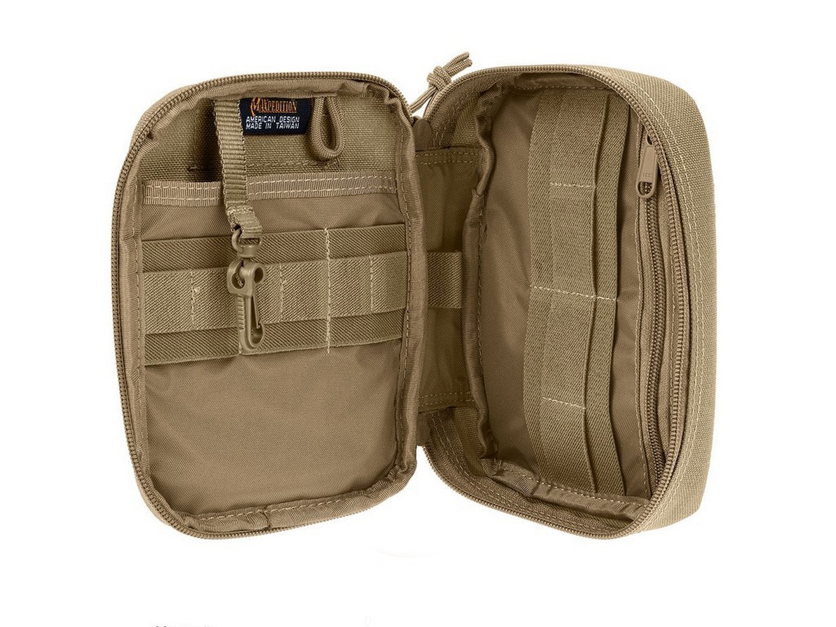 Карман Maxpedition изготовлен из нейлона плотностью 1000D, что делает его устойчивым к истиранию и воде. Кроме того, органайзер покрыт слоем тефлона, благодаря чему его намного легче содержать в чистоте.