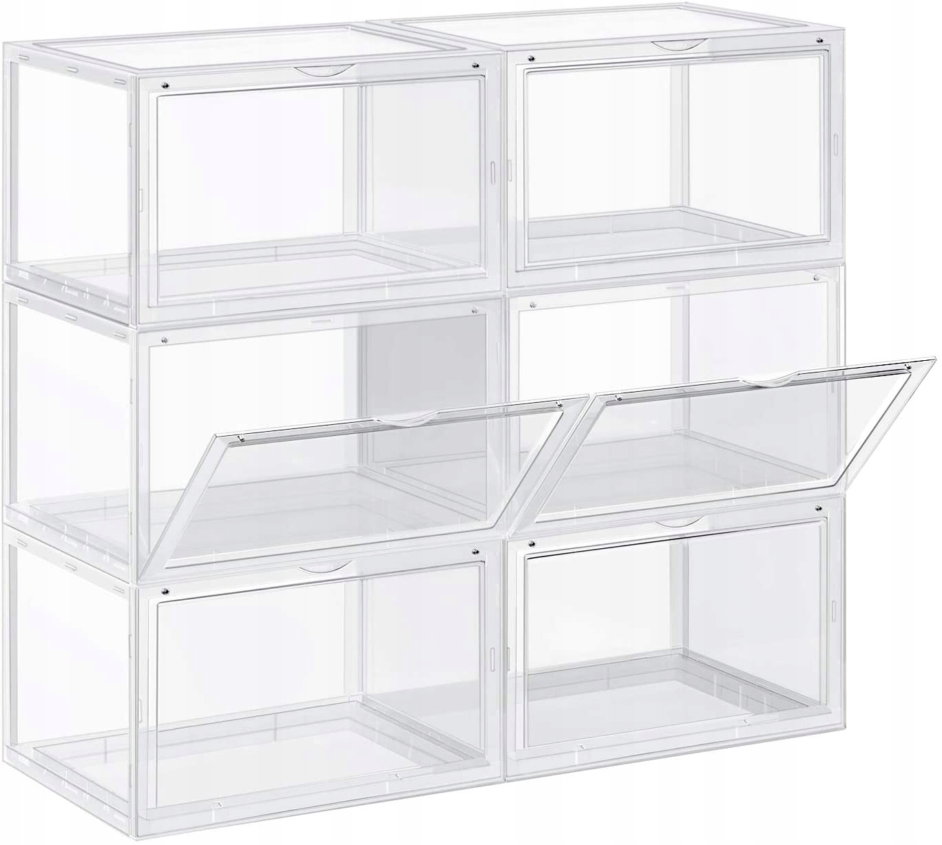 Набор из 6 обувных коробок для более удобного и организованного хранения обуви. Коробки достаточно широки, чтобы вместить обувь до 46 размера. Коробки изготовлены из прочного и прочного прозрачного пластика и идеально подходят друг к другу. Помимо обуви, вы также можете хранить детские игрушки, компакт-диски, полотенца и принадлежности для рукоделия.