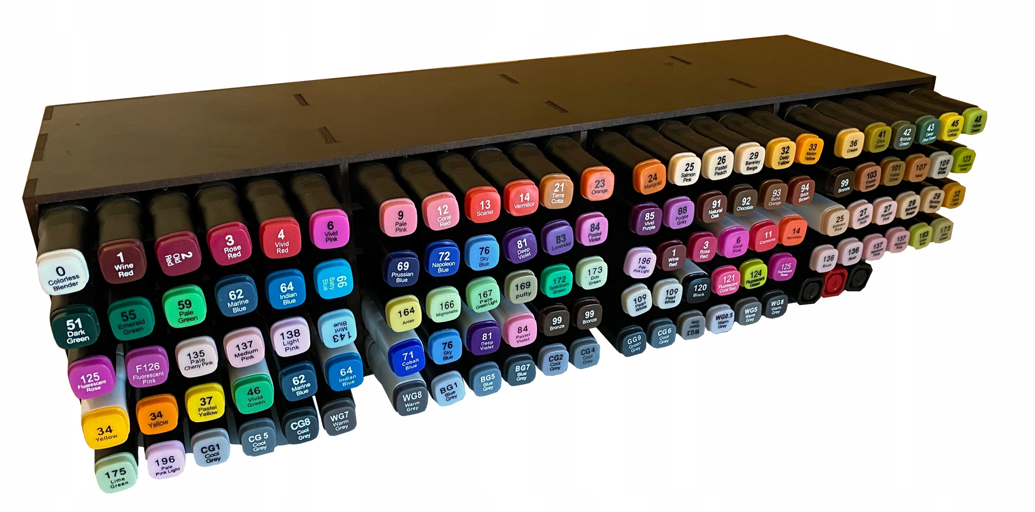 Органайзер вмещает 120 маркеров толщиной 16 мм.
