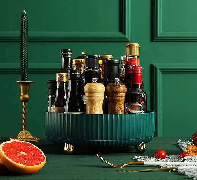 ORGANIZER NA PRZYPRAWY KOSMETYKI TALERZ OBRACANY PRZECHOWYWANIE ZIELONY