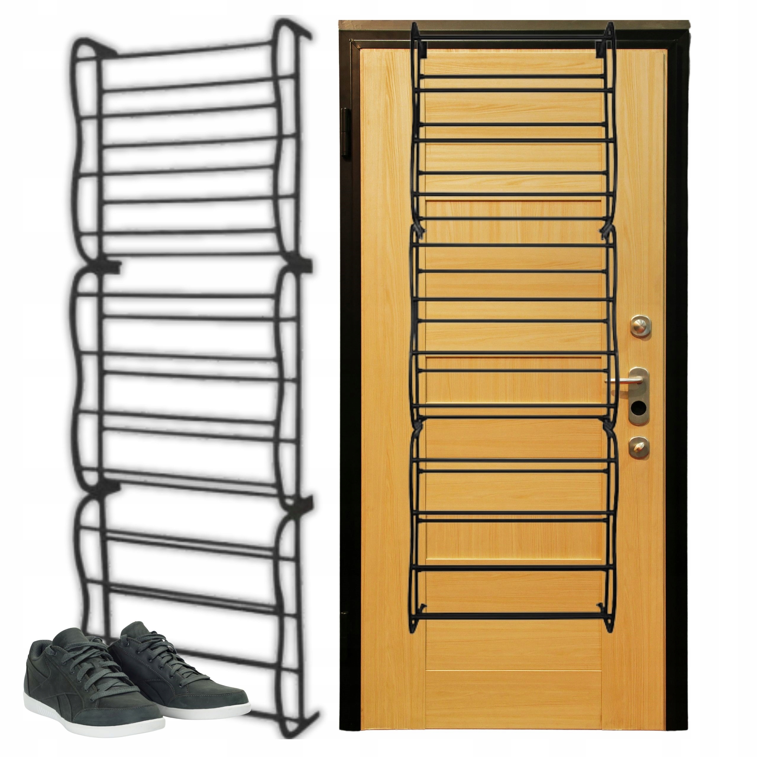 ⭐ Этот практический книжный шкаф является отличным решением для людей, которые хотят организовать свою обувь , не занимая ценное пространство. Свет и стабильная структура, изготовленная из металла, обеспечивает долговечность и стабильность, и в то же время не обременяет дверь. двери, без необходимости использования инструментов. Буквально 2 минуты достаточно, чтобы установить его! Благодаря 6 уровням полков, вы можете удобно хранить разные виды обуви - от спорта до элегантного. рюкзаки или тапочки. Минималистский, черный цвет вписывается в любой дизайн интерьера,