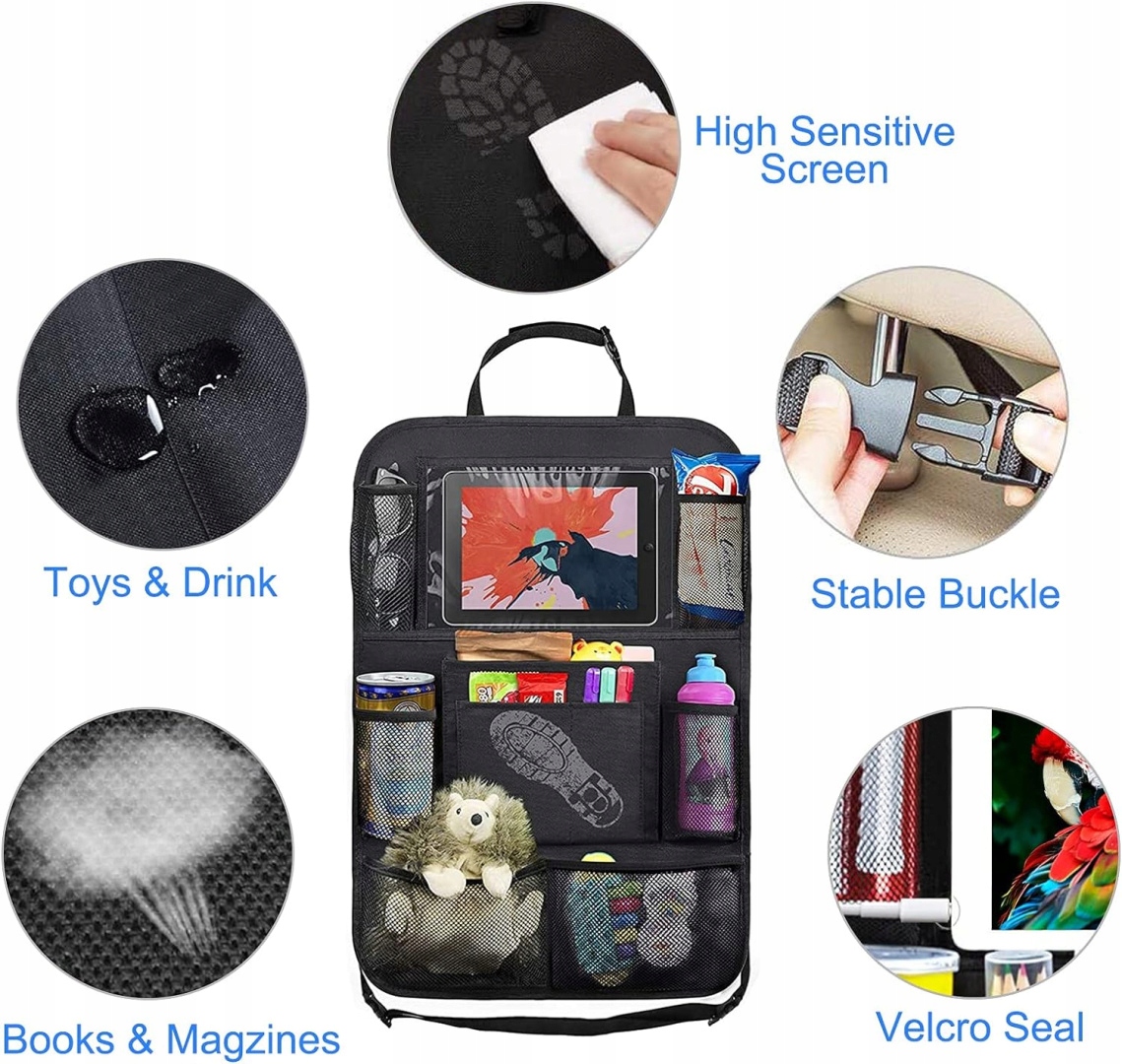 - Универсальный автомобильный органайзер: защита заднего детского сиденья имеет 8 отделений, в которых больше места для напитков, детских игрушек, книг и журналов. Прозрачная поверхность окна достигает размеров 26 x 19,3 см (10 дюймов) с двумя большими отверстиями рядом с окном планшета, в которых достаточно места для кабеля зарядки и кабеля наушников, что делает ваше путешествие проще и приятнее
