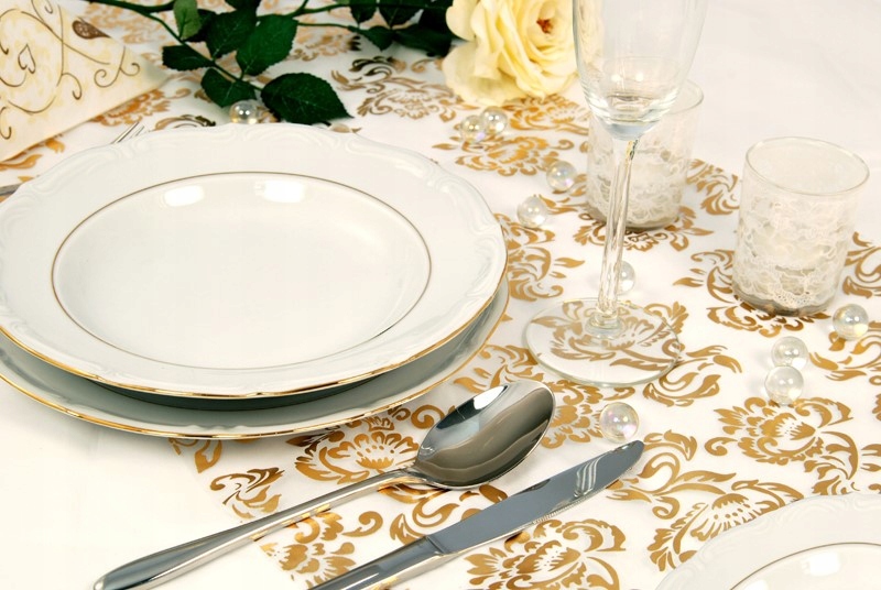 ORGANZA BIAŁA Z NADRUKIEM ZŁOTY SREBRNY WESELE ŚLUB KOMUNIA IHS 36 CM X 9 M
