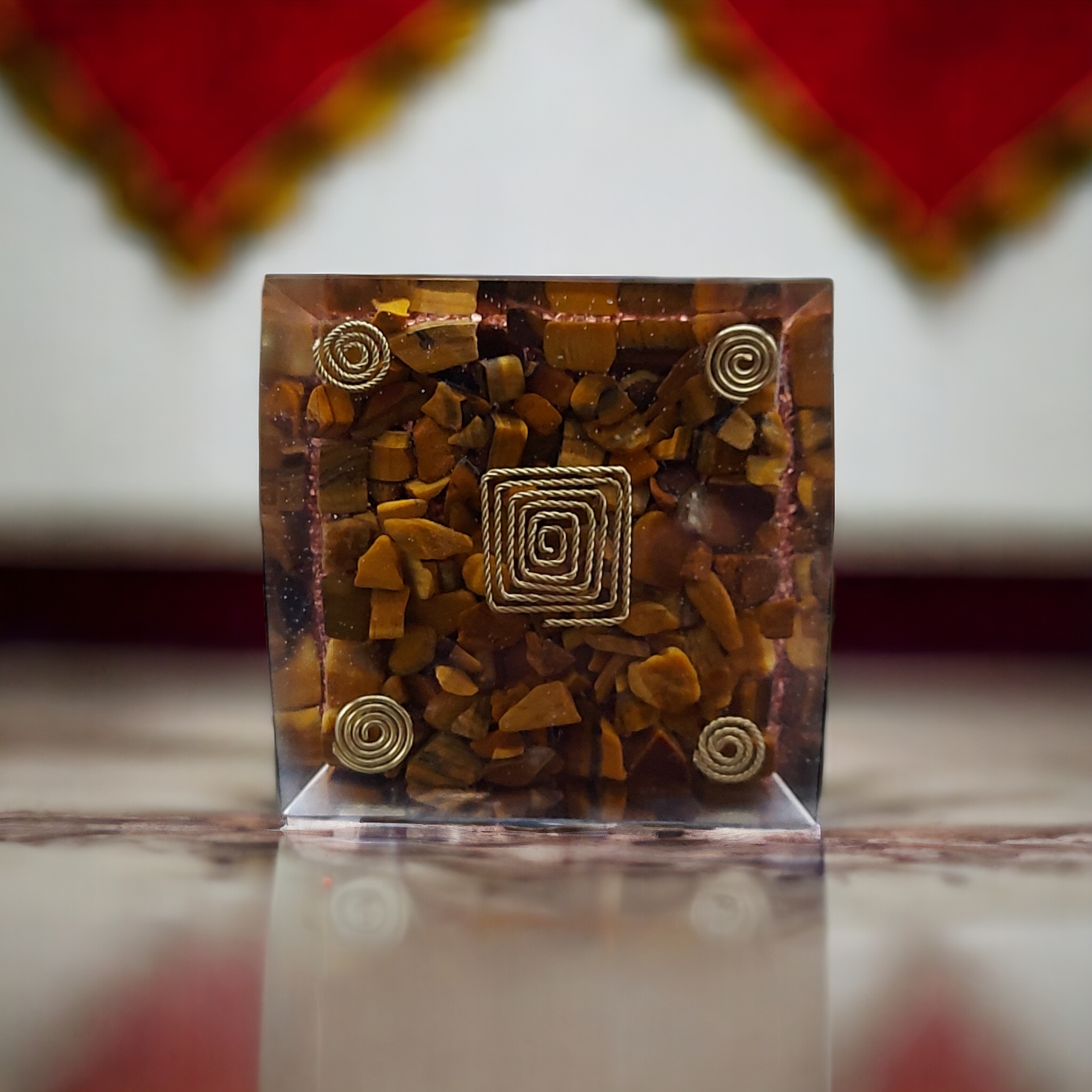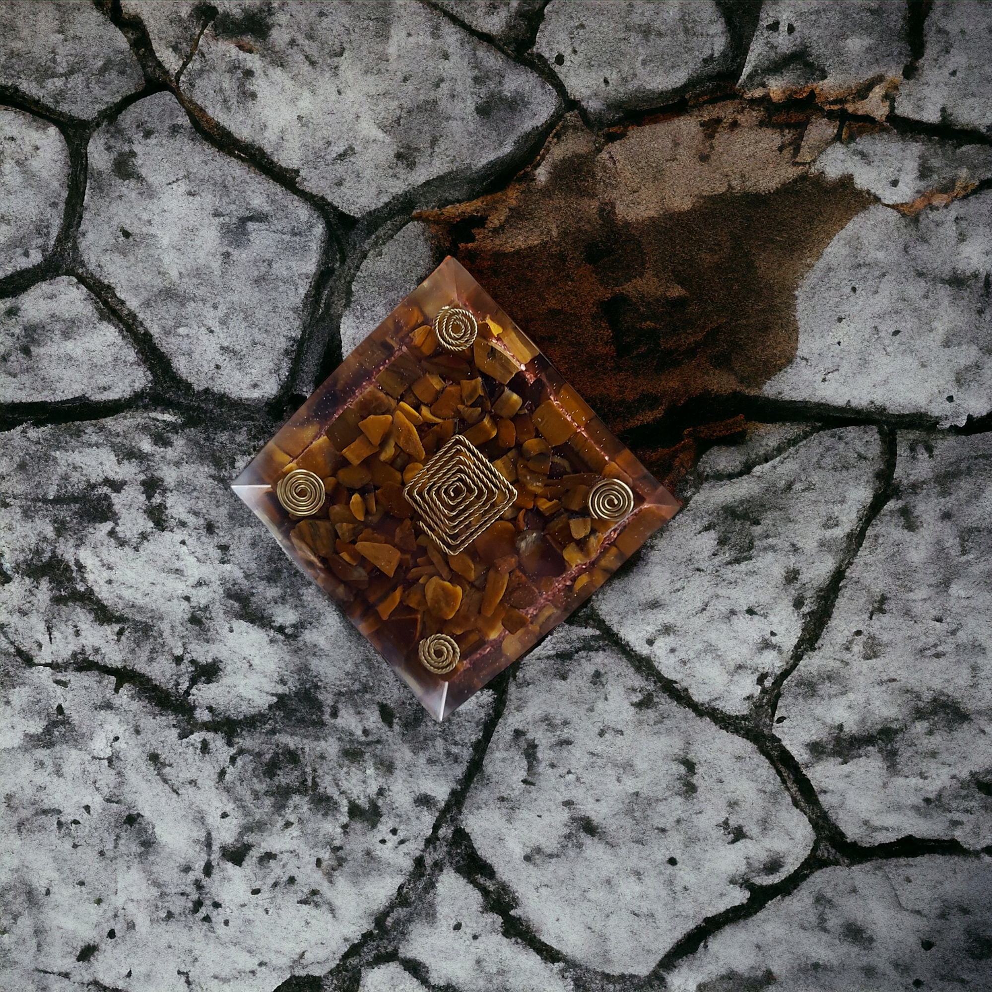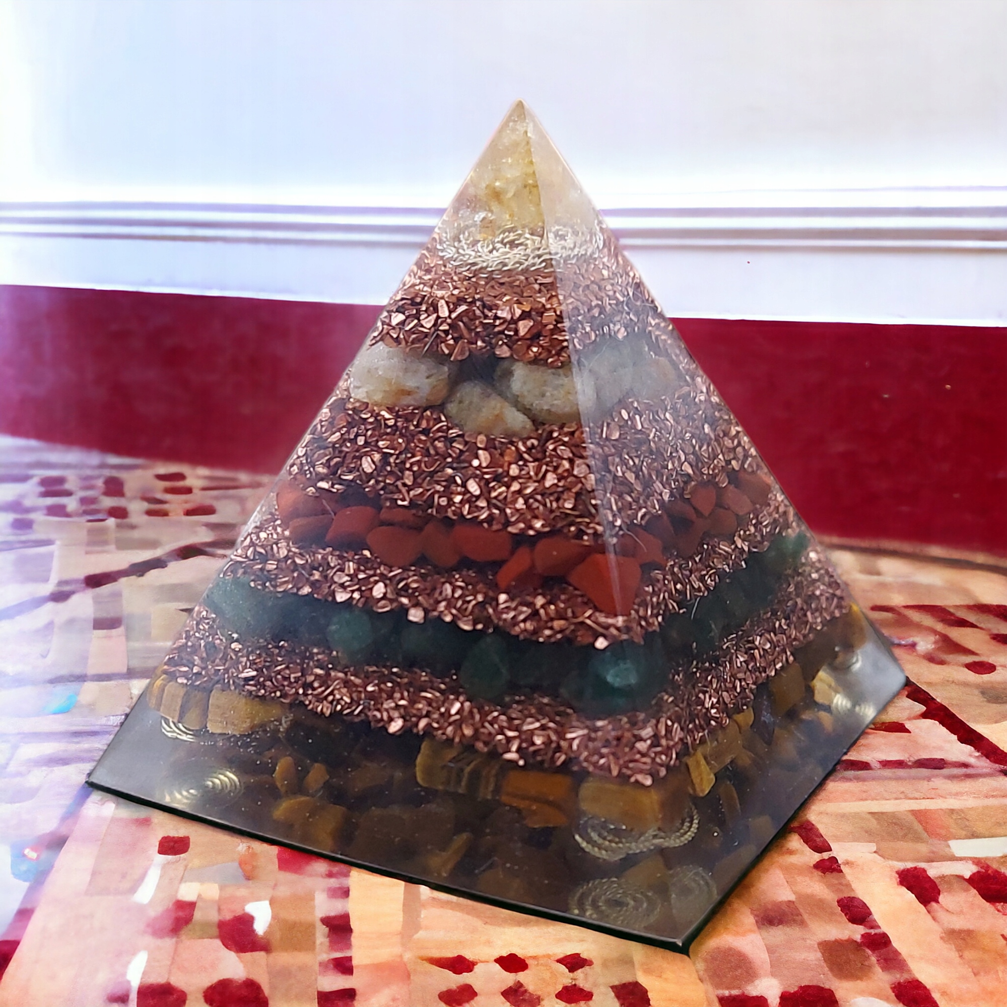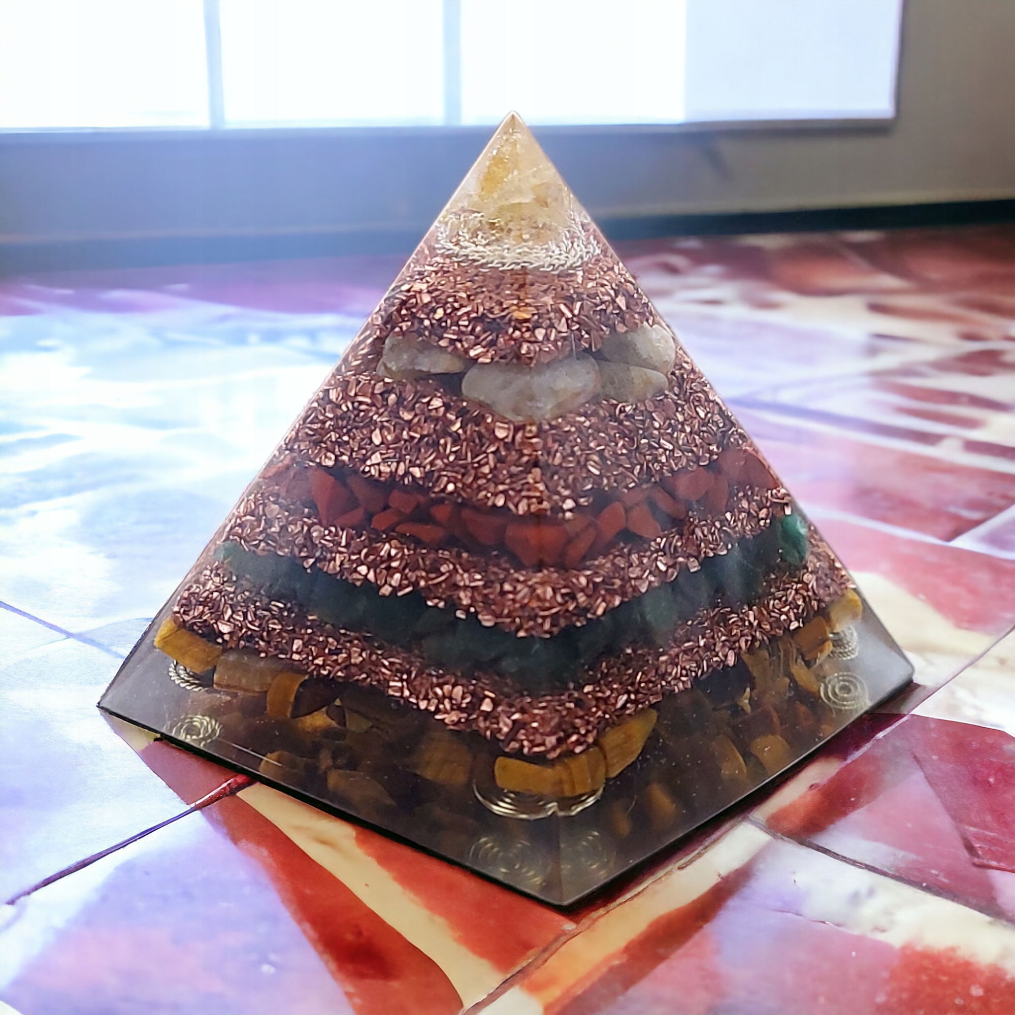 Оргонит - Пирамида - Цитрин Гранат Зеленая яшма Красный авантюрин Тигровый глаз