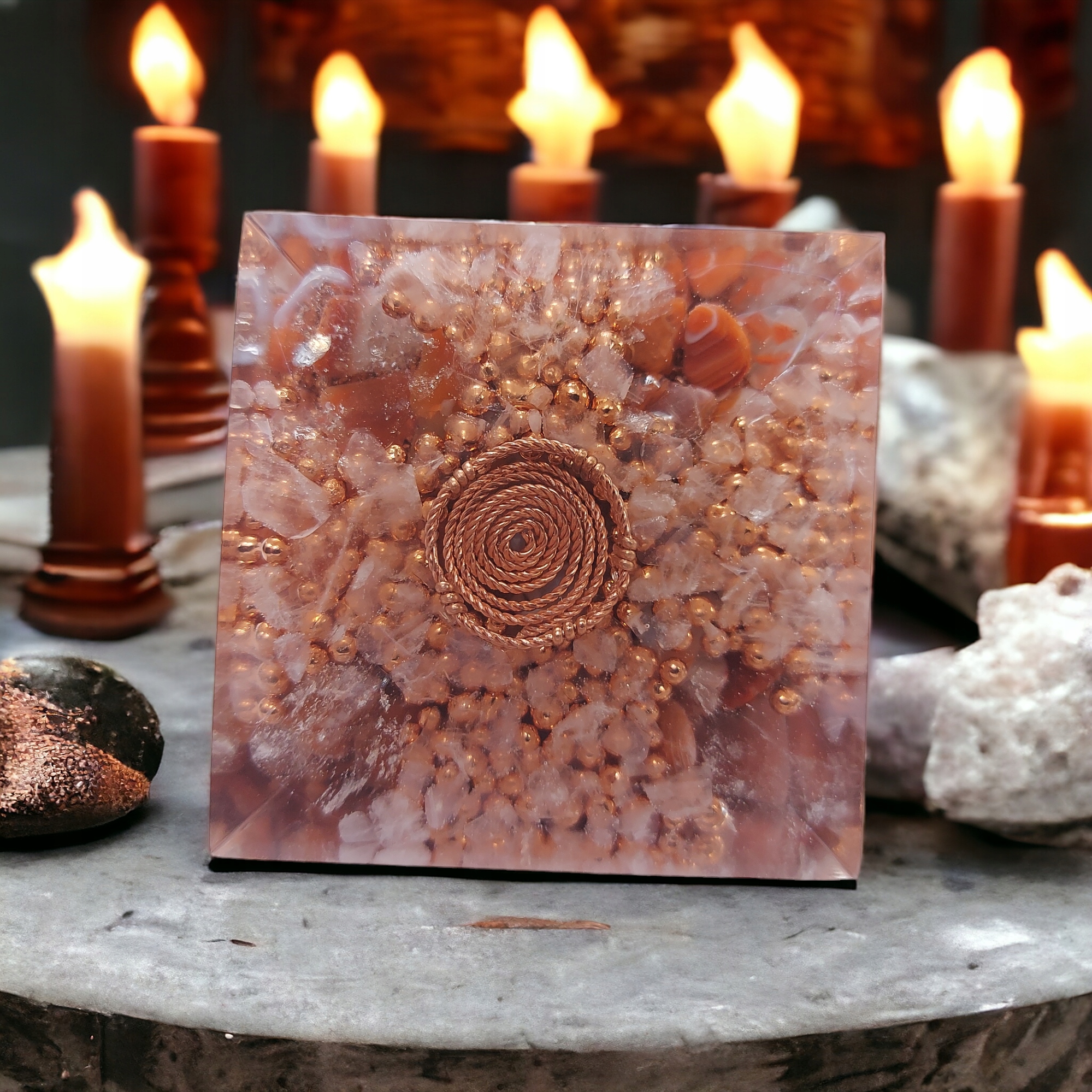 Оргонит - Пирамида - Хром Диопсит Аметист Красная яшма Лунный камень Агат Красный горный хрусталь