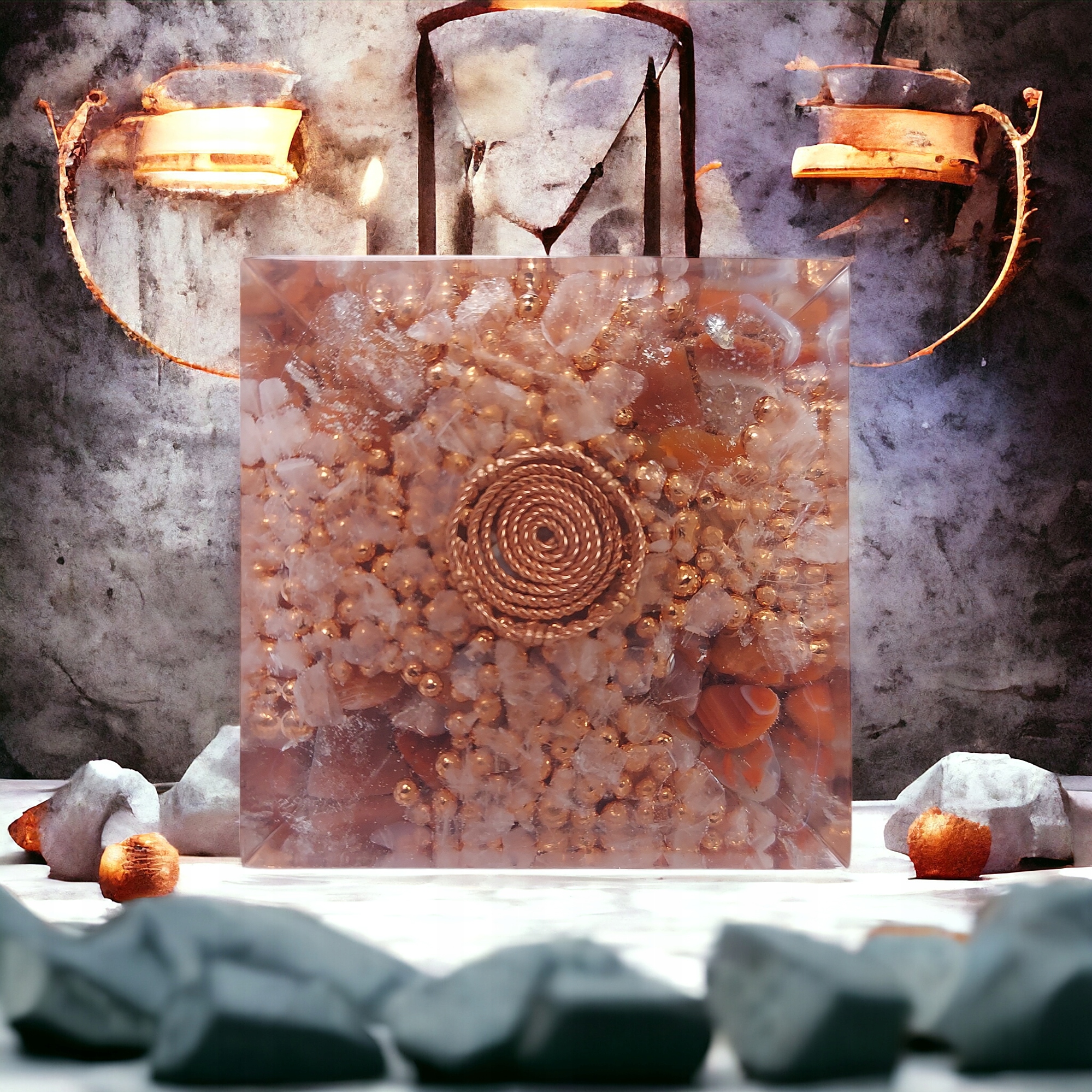 Оргонит является энергетическим гармонизатором и преобразователем отрицательной энергии в положительную >. Это смесь кристаллов, минералов и металлов, заключенных в смолу. Оргонит поглощает отрицательную энергию (ДОР) отдает взамен положительную энергию (ПОР - живительный Оргон). Часто современные оргонитовые устройства содержат целебные минералы для усиления их силы, и им можно придать формы с использованием сакральной геометрии, например пирамиды, которые отдают дань уважения древнему миру и отдают дань уважения нашим предкам.