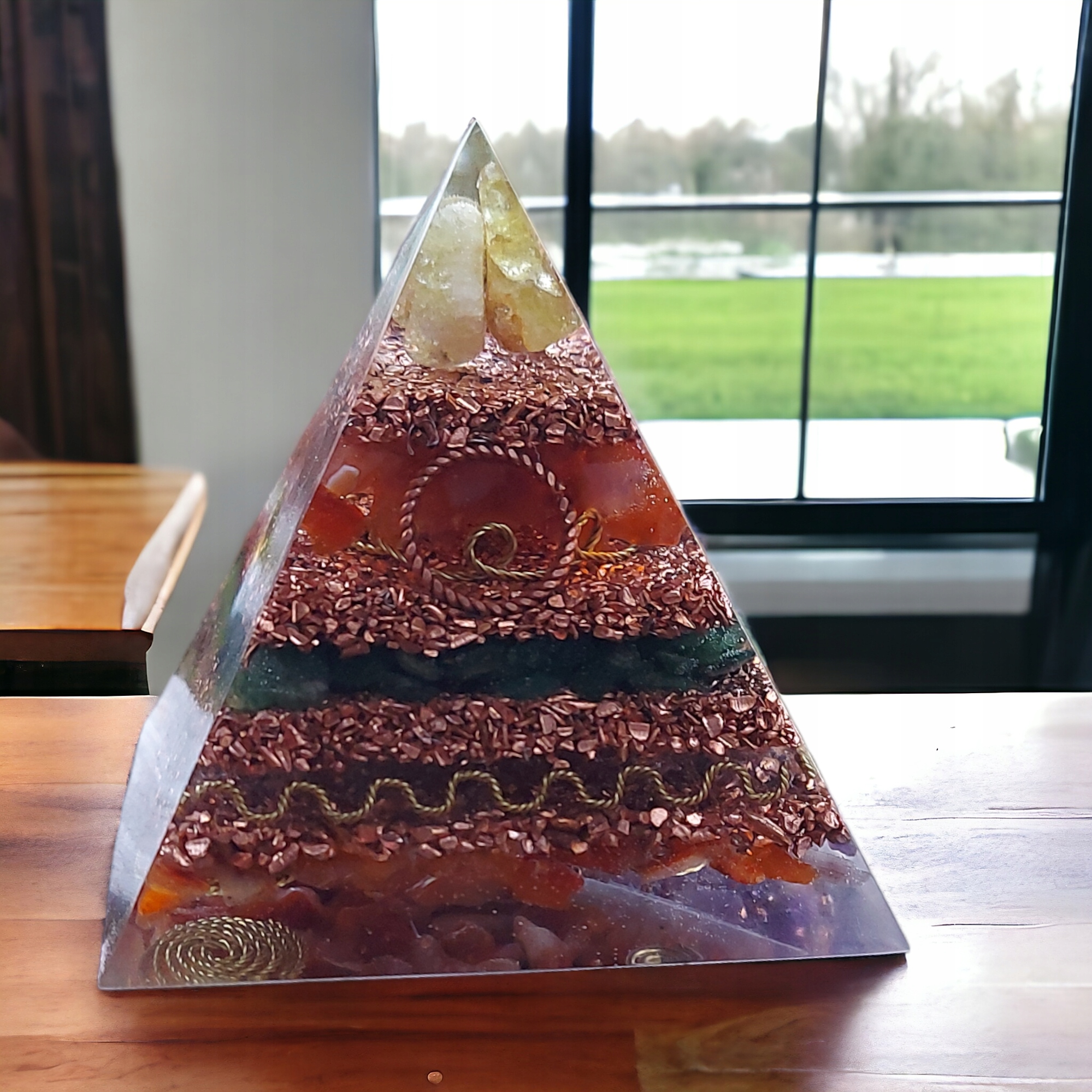Оргонит - Пирамида - Гранат Зеленый Сердолик Авантюрин Горный хрусталь Аметист Селенит