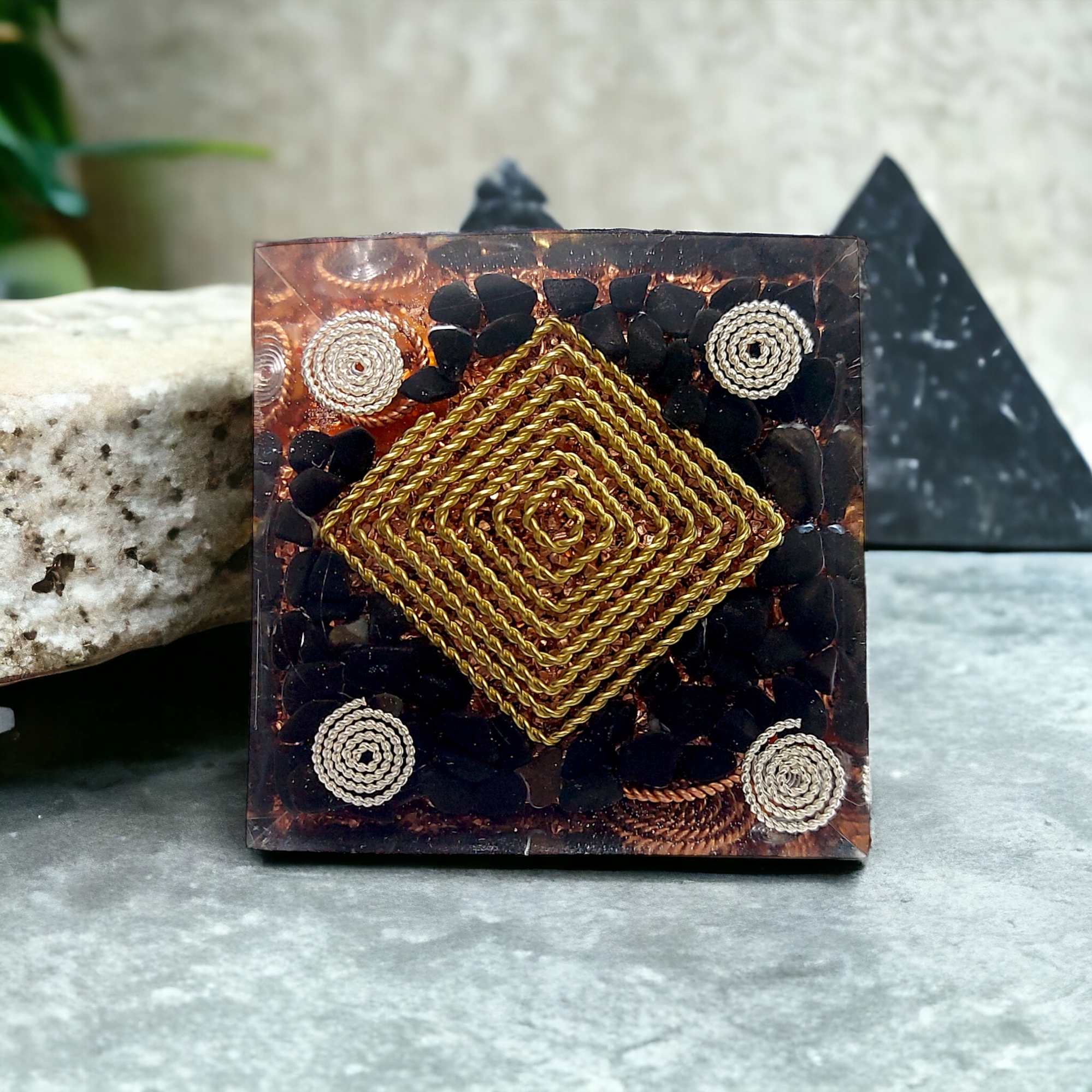 Оргонит является энергетическим гармонизатором и преобразователем отрицательной энергии в положительную >. Это смесь кристаллов, минералов и металлов, заключенных в смолу. Оргонит поглощает отрицательную энергию (ДОР) отдает взамен положительную энергию (ПОР - живительный Оргон). Часто современные оргонитовые устройства содержат целебные минералы для усиления их силы, и им можно придать формы с использованием сакральной геометрии, например пирамиды, которые отдают дань уважения древнему миру и отдают дань уважения нашим предкам.