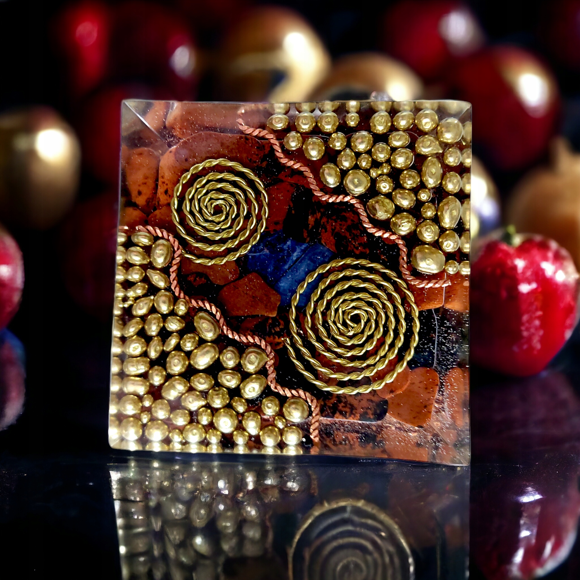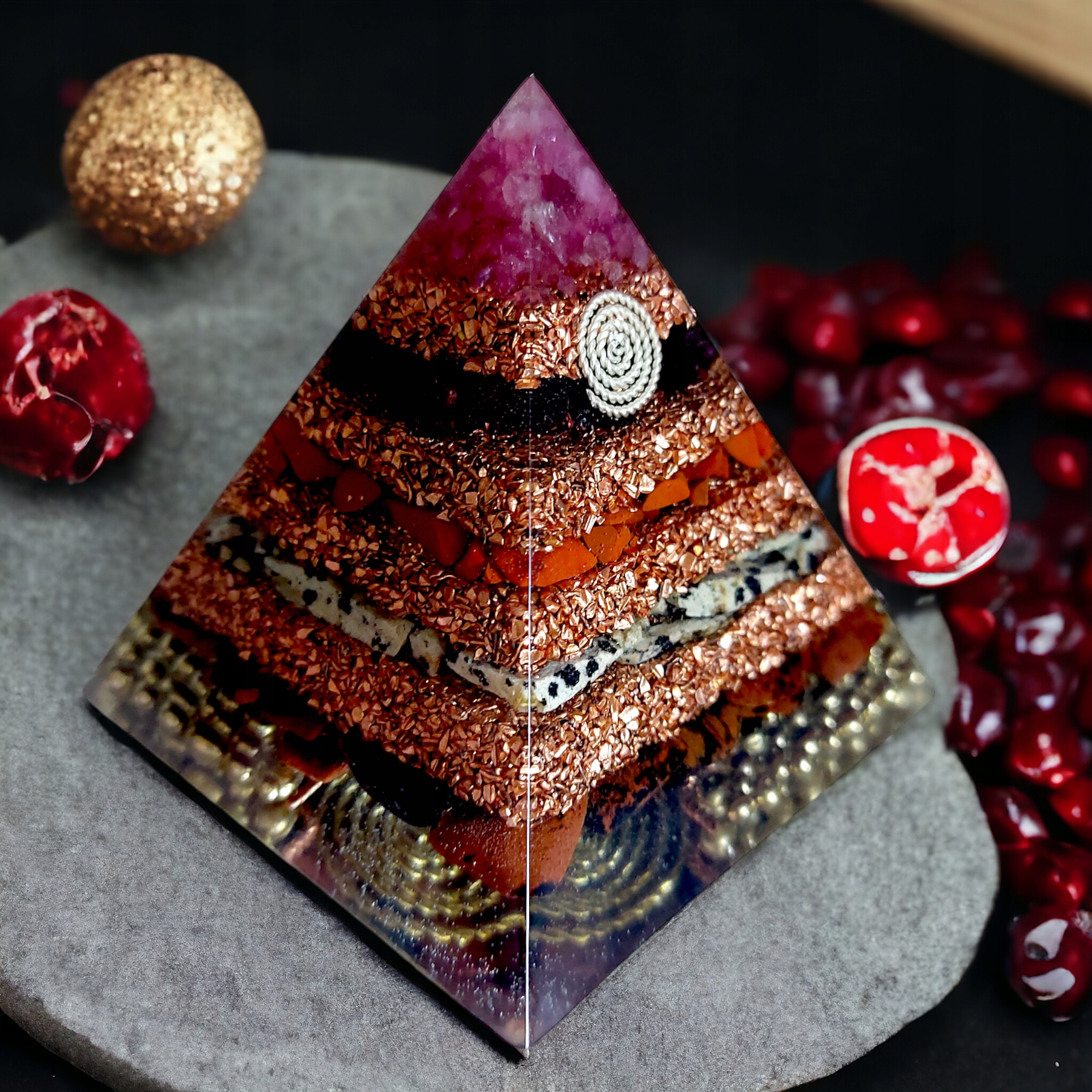 Оргонит - Пирамида Тутела Гексаграмма Рубеллит Гранат Красная яшма Далматинская яшма Красное дерево Обсидиан
