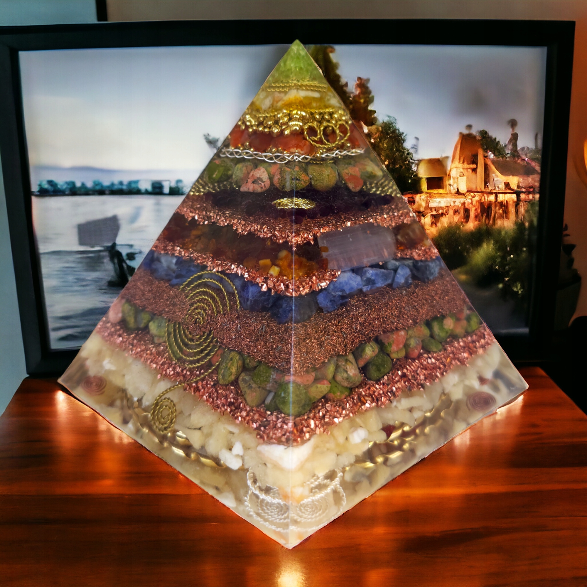 Оргонит - Пирамида Защита Богатство Энергия Счастье - Перидот Цитрин Сердолик Унакит Гранат Янтарь Селенит Лабрадорит Содалит Кальцит Желтый Аметист