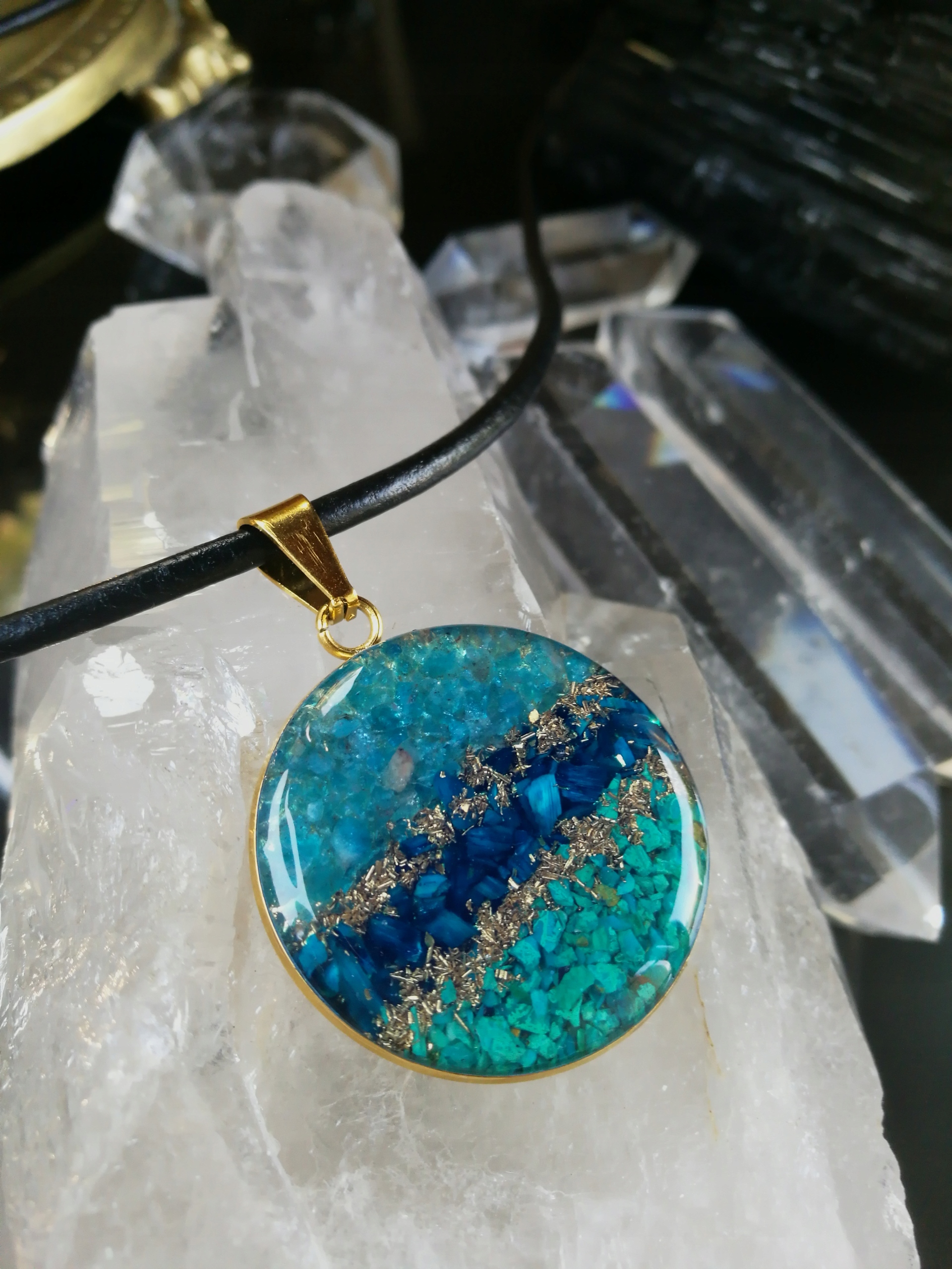 Эксклюзивный оргонит ручной работы, изготовленный по особой технике с ювелирной точностью. Минералы и дополнительные материалы заключены в органическую смолу.