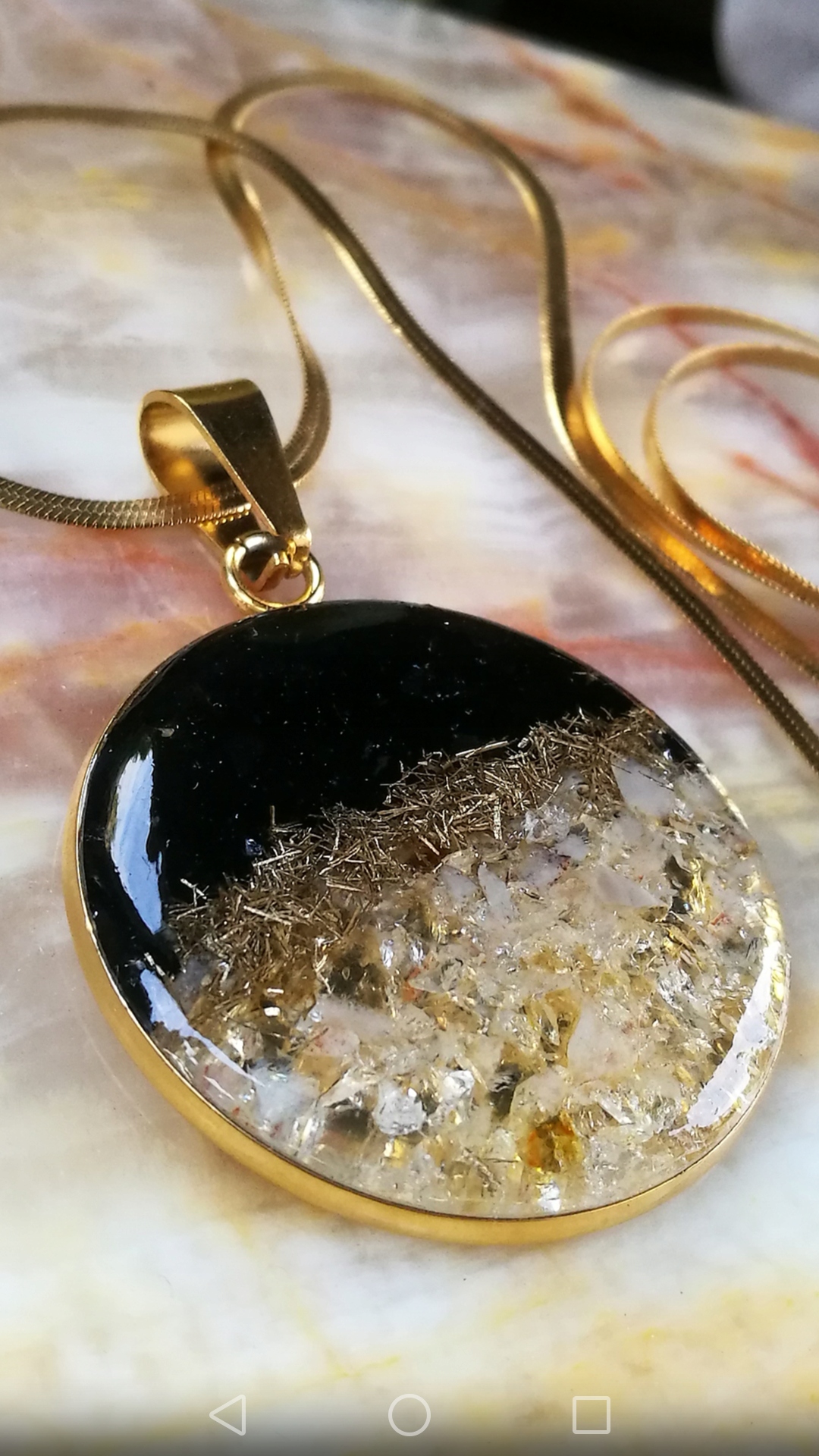 Эксклюзивный оргонит ручной работы, сделанный специальной техникой с ювелирной точностью. Минералы и дополнительные материалы были встроены в органическую смолу.