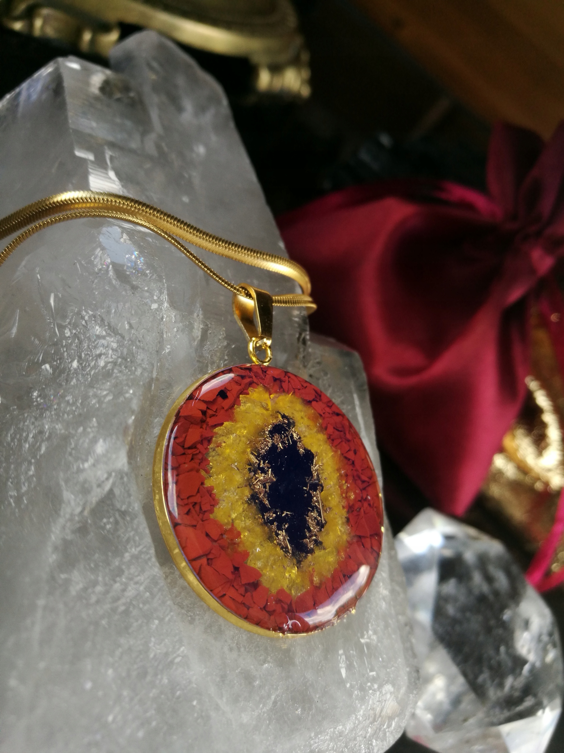 Эксклюзивный оргонит ручной работы, изготовленный по особой технике с ювелирной точностью. Минералы и дополнительные материалы заключены в органическую смолу.