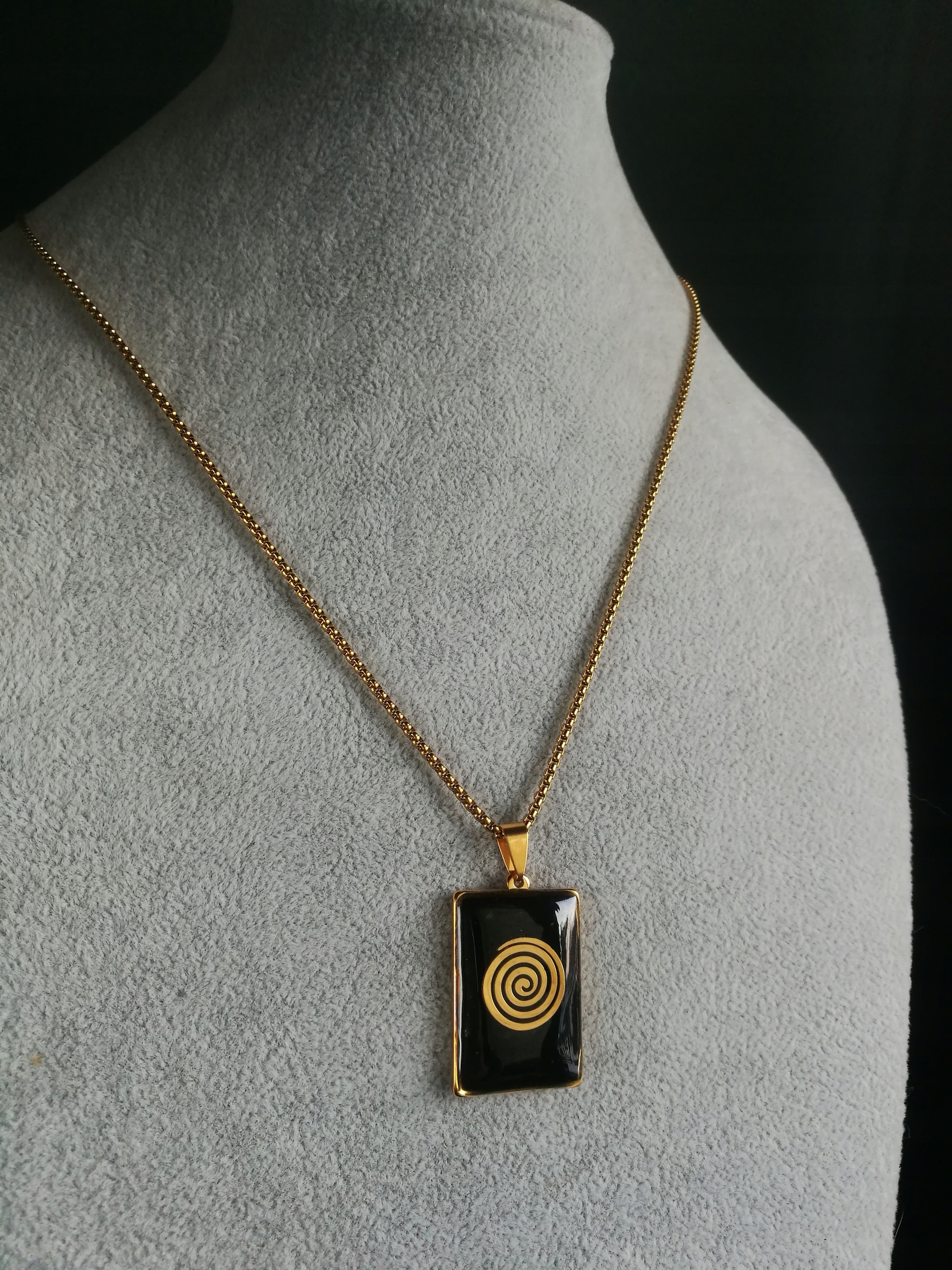 - Чтобы укрепить, предотвращая любые неконтролируемые придурки для ожерелья, в оргоните я использую прочную стальную проволоку, которая является разъемом между ожерельем и подвеской для цепи. Он изготовлен из хирургической нержавеющей стали, которая защищает от случайного разрыва. Это увеличивает эстетические и коммунальные ценности, благодаря тому, что оргонит можно носить с обеих сторон. Каждая сторона оргонита (спереди, задний, задний) имеет свой уникальный рисунок.