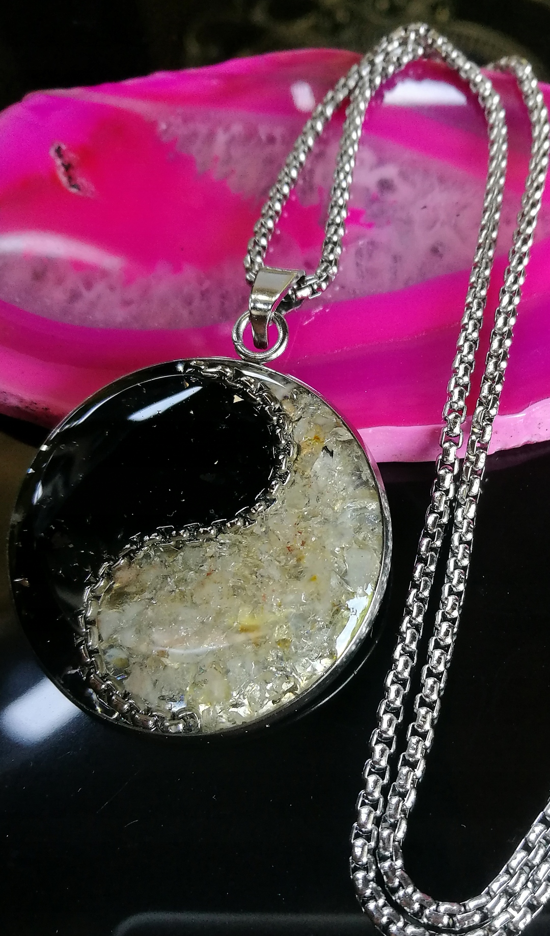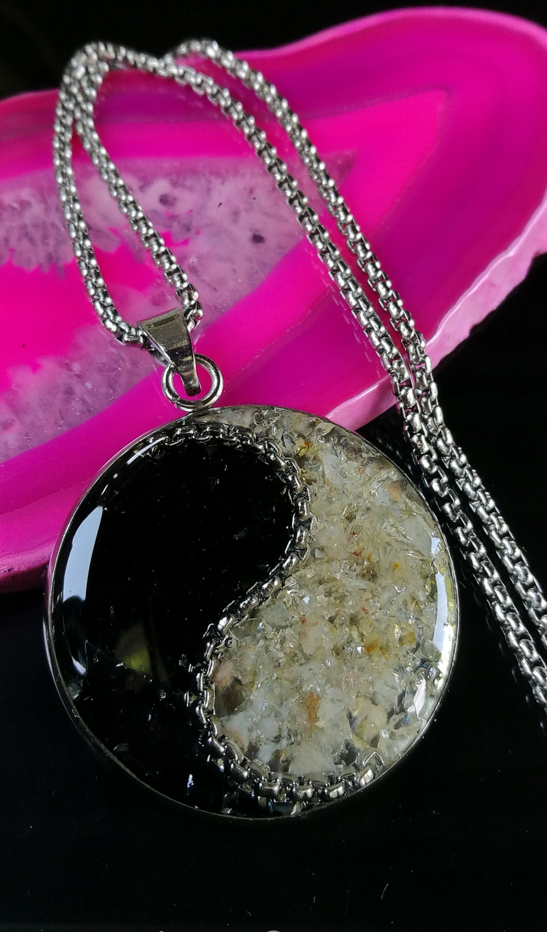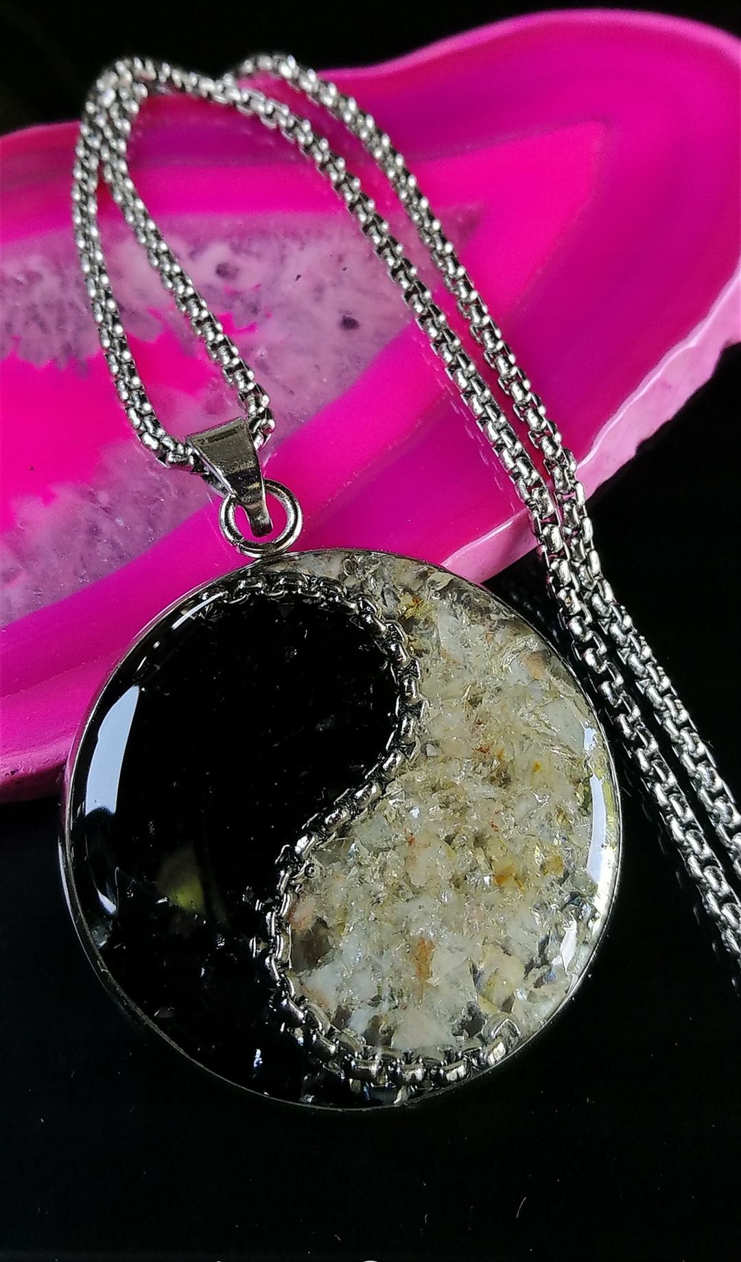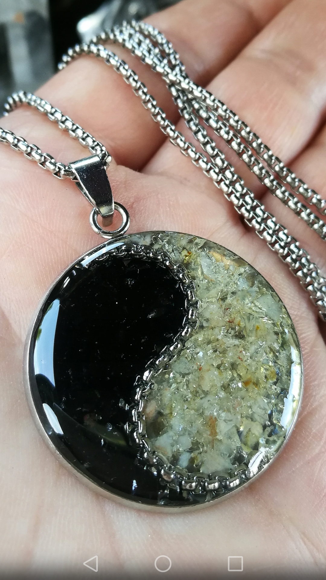 Эксклюзивный оргонит ручной работы, сделанный специальной техникой с ювелирной точностью. Минералы и дополнительные материалы были встроены в органическую смолу. Yin -yang
