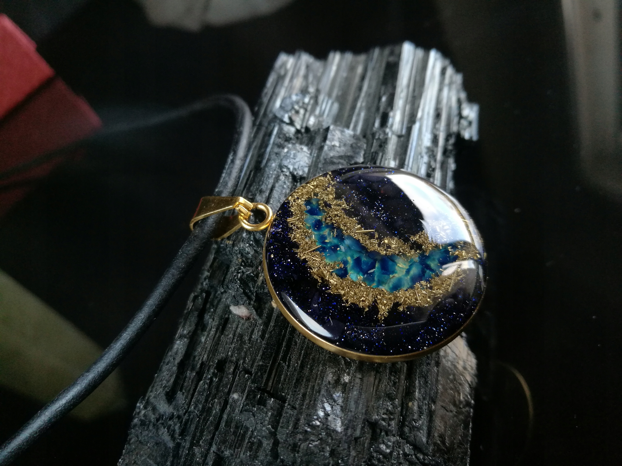 Эксклюзивный оргонит ручной работы, сделанный специальной техникой с ювелирной точностью. Минералы и дополнительные материалы были встроены в органическую смолу.