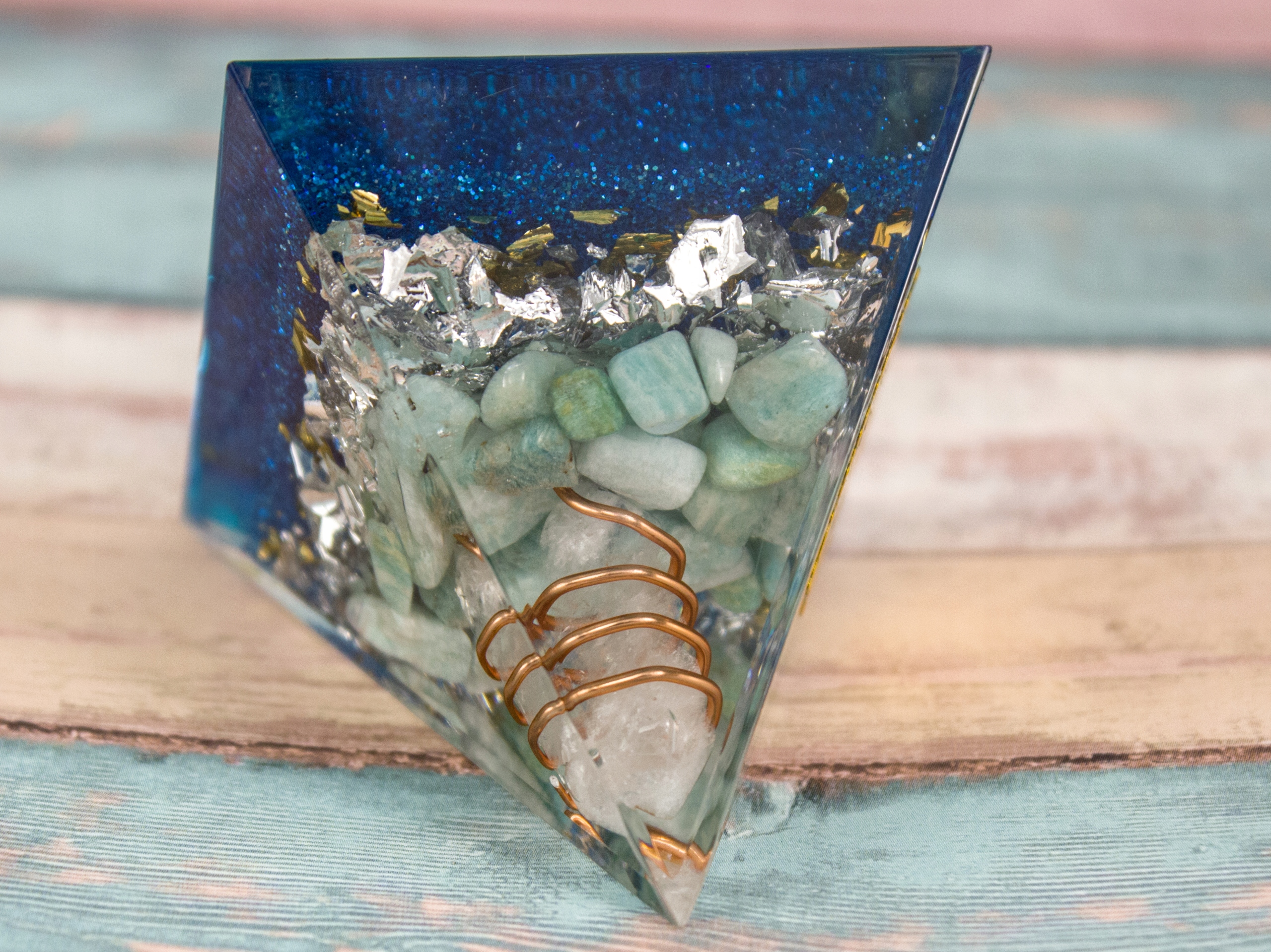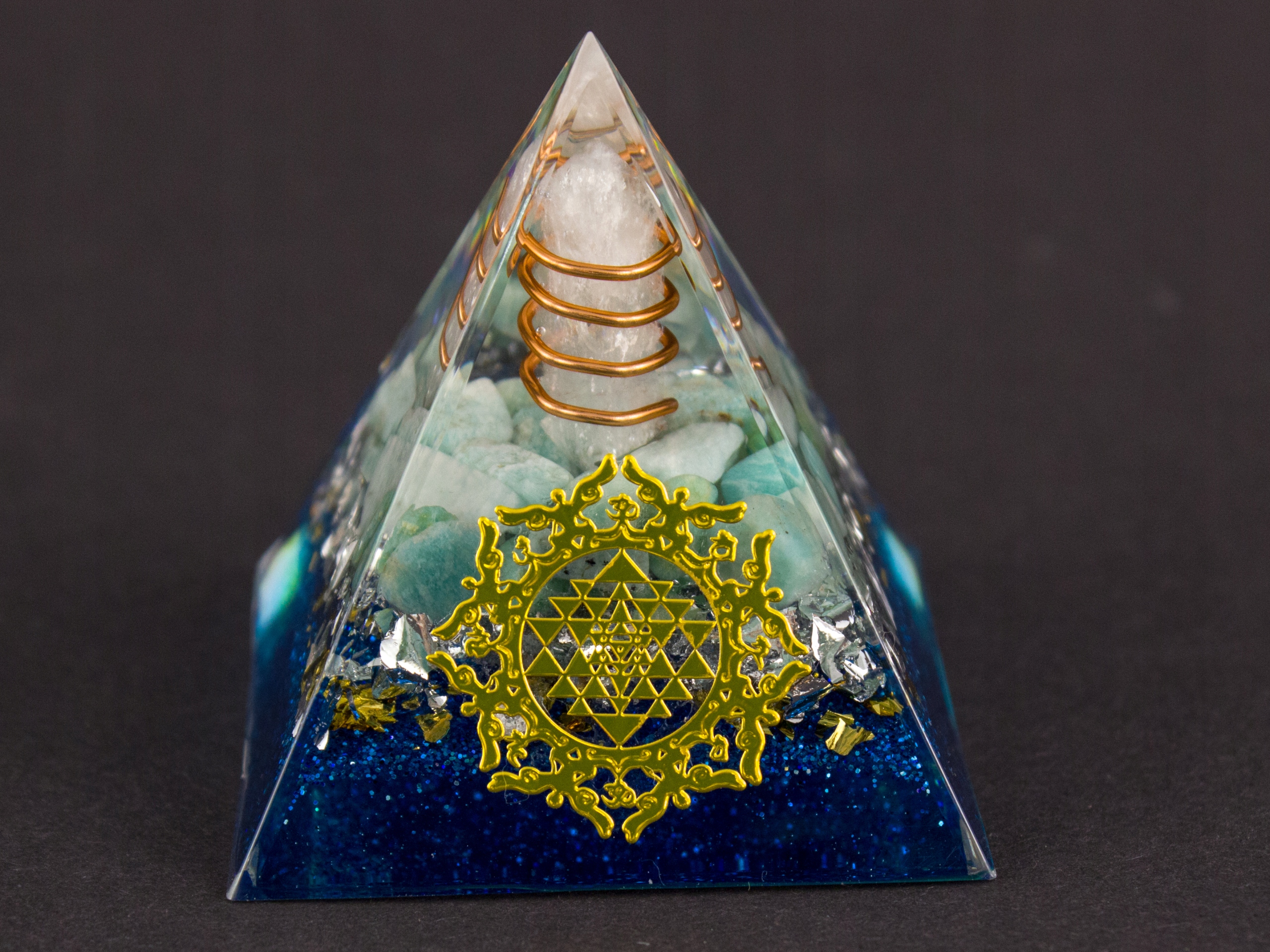 ОРГОНИТОВАЯ ПИРАМИДА АМАЗОНИТ МЕДНО-АЛЮМИНИЙ 5 см