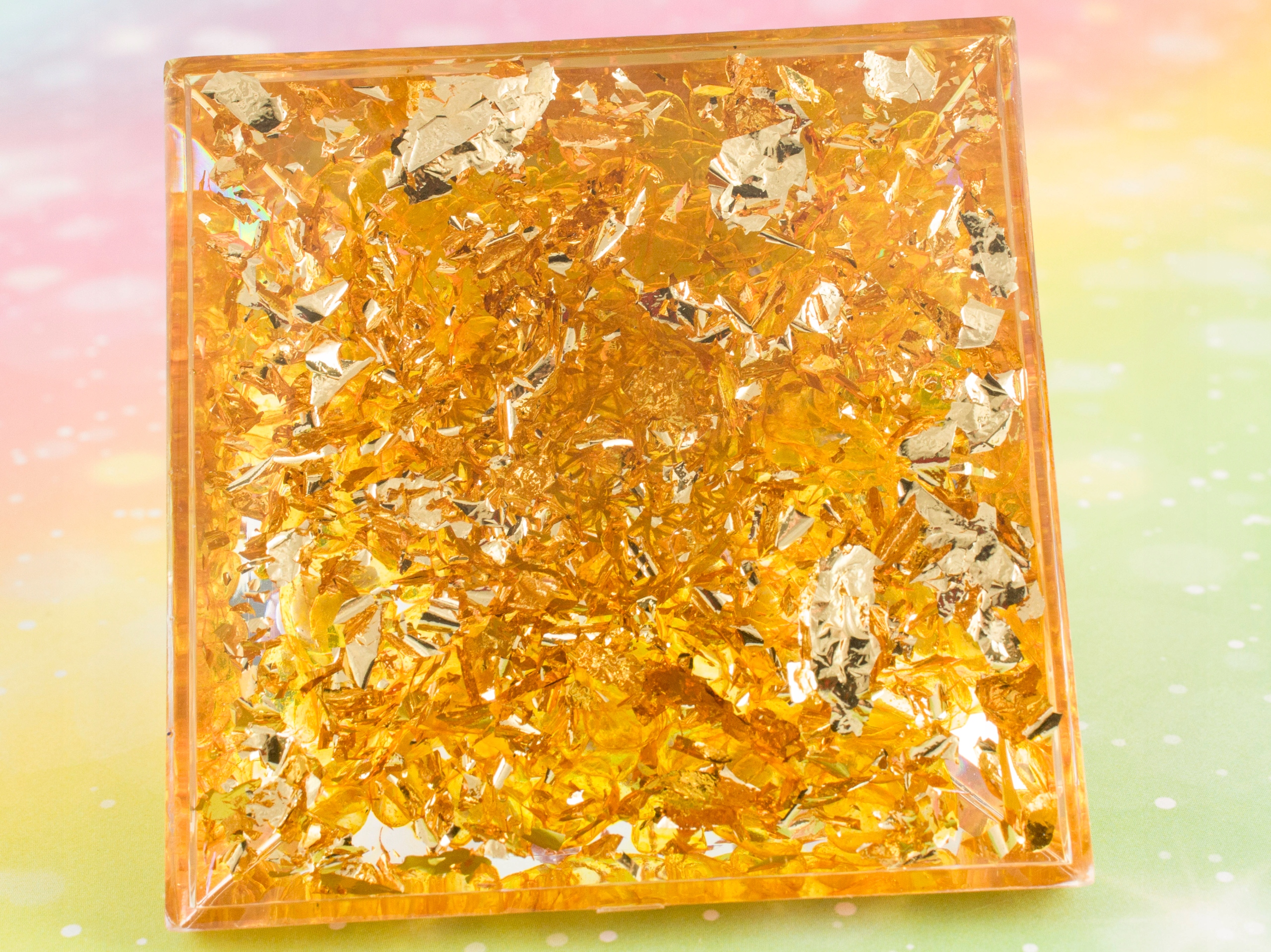 Эта пирамида - не только энергетический инструмент - это настоящий праздник для глаз. Прозрачная основа, наполненная оранжево-лимонной и золотой фольгой, пропускает свет, например солнечный или искусственный свет, который может создавать теплые, золотистые отблески.
