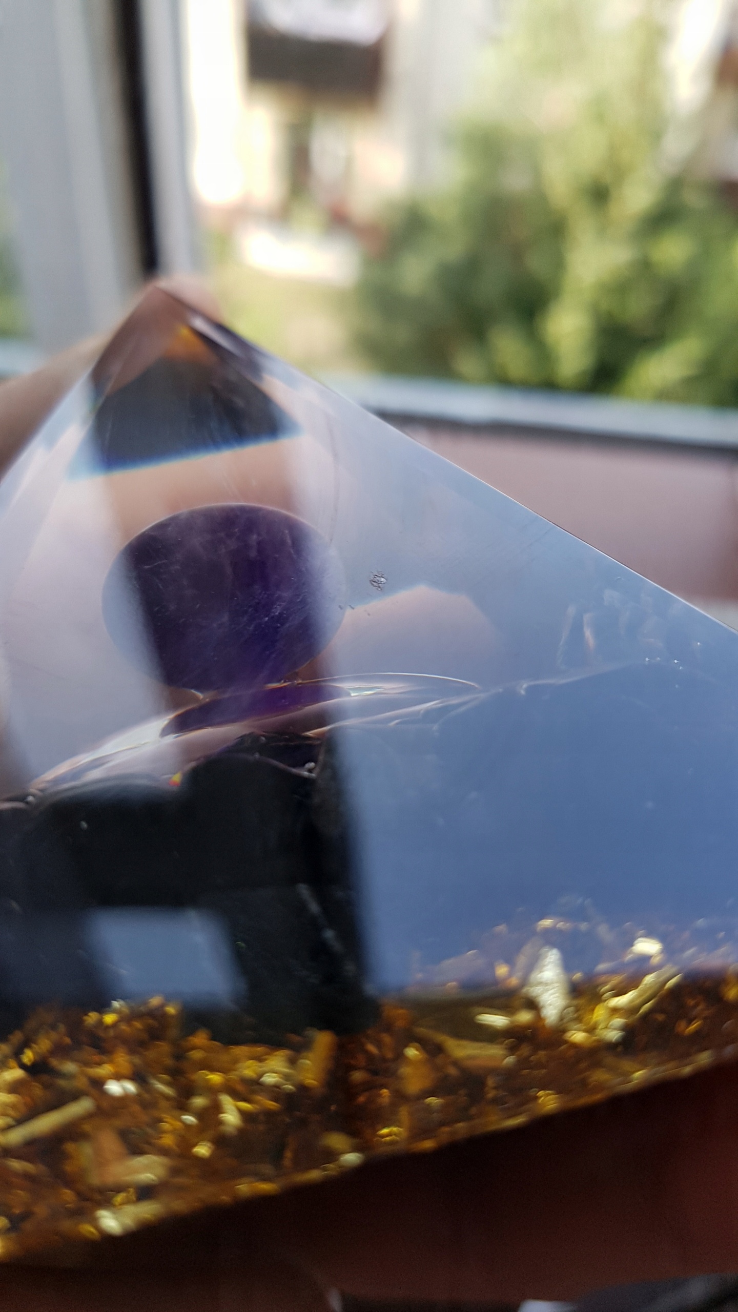 ПРИМЕЧАНИЕ: Эта пирамида имеет дефект. На одной из стенок есть небольшая точка, которую можно нащупать пальцем, похожую на излишки смолы - небольшой выступ на поверхности. На последних 4 фото в предложении изображен именно этот предмет.