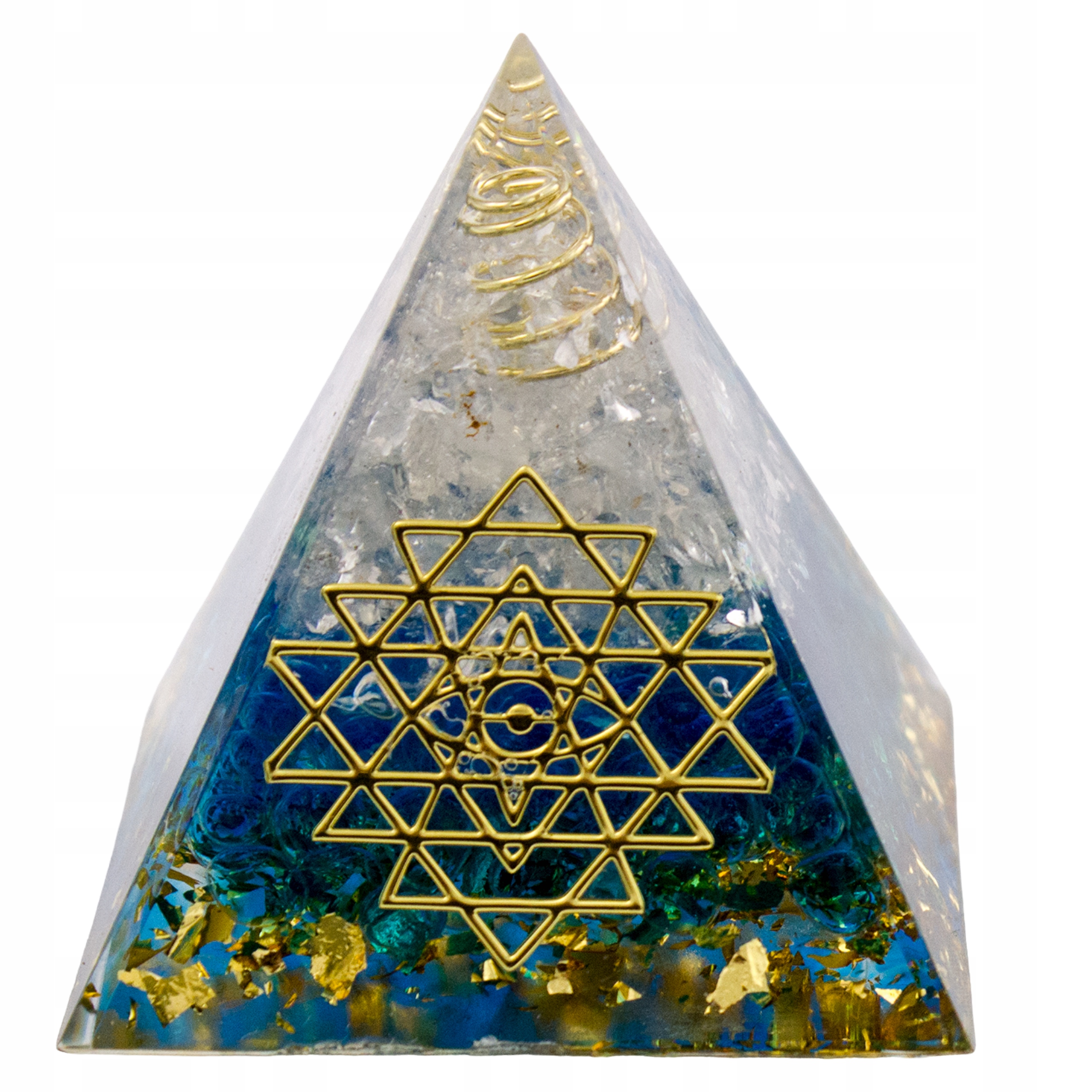 Красивая оргонитовая пирамидка - Белоснежный горный кварц, синее стекло гравий, красивый декор из натуральной смолы с блестящей золотой фольгой, излучающий энергию, дарующую хорошее здоровье, нейтрализующую плохую энергию, очищающую окружающую среду.