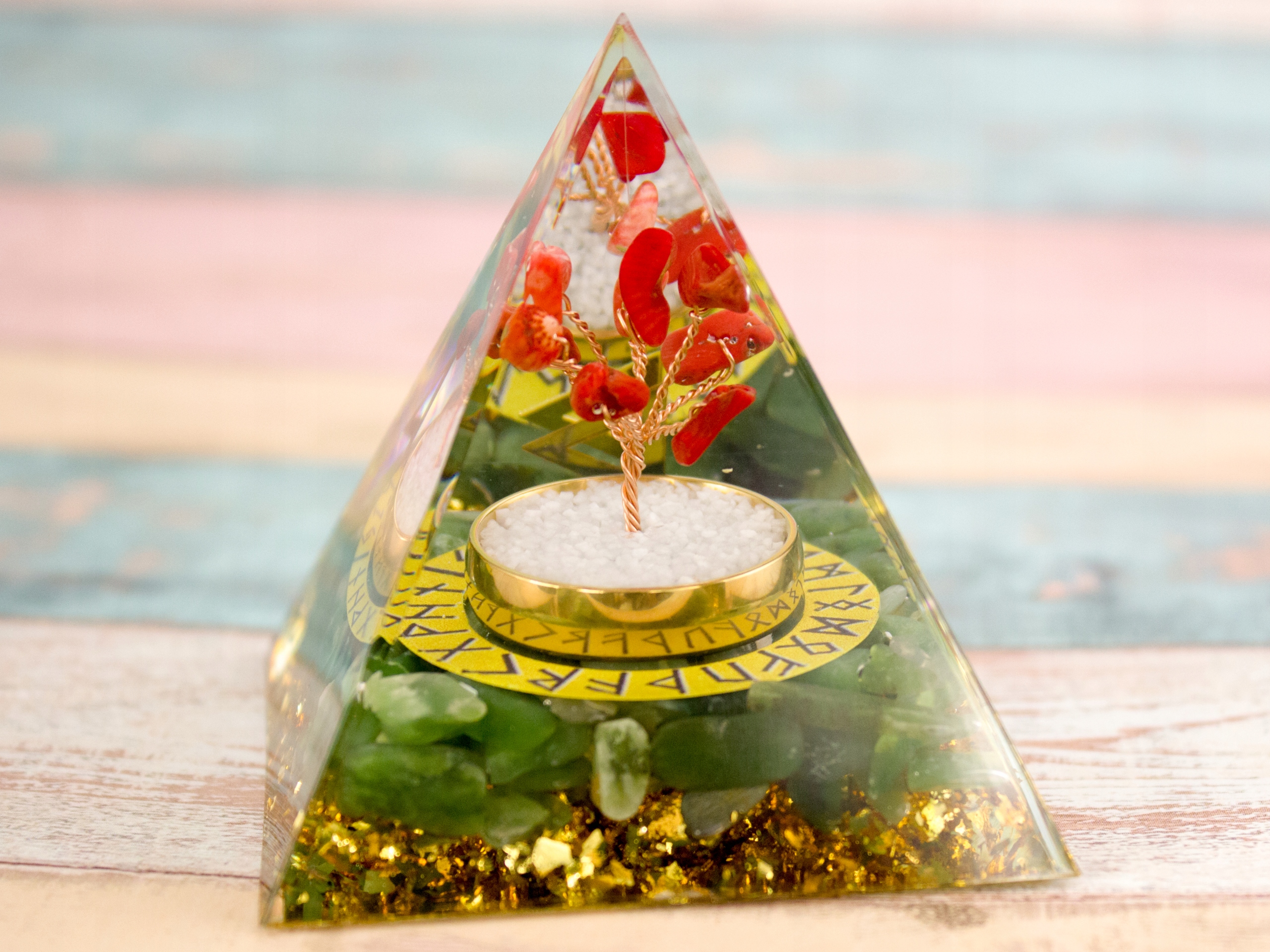 ОРГОНІТОВА ПІРАМІДА НОРДИЧНІ РУНИ WUNJO КОРАЛОВИЙ АГАТ 6