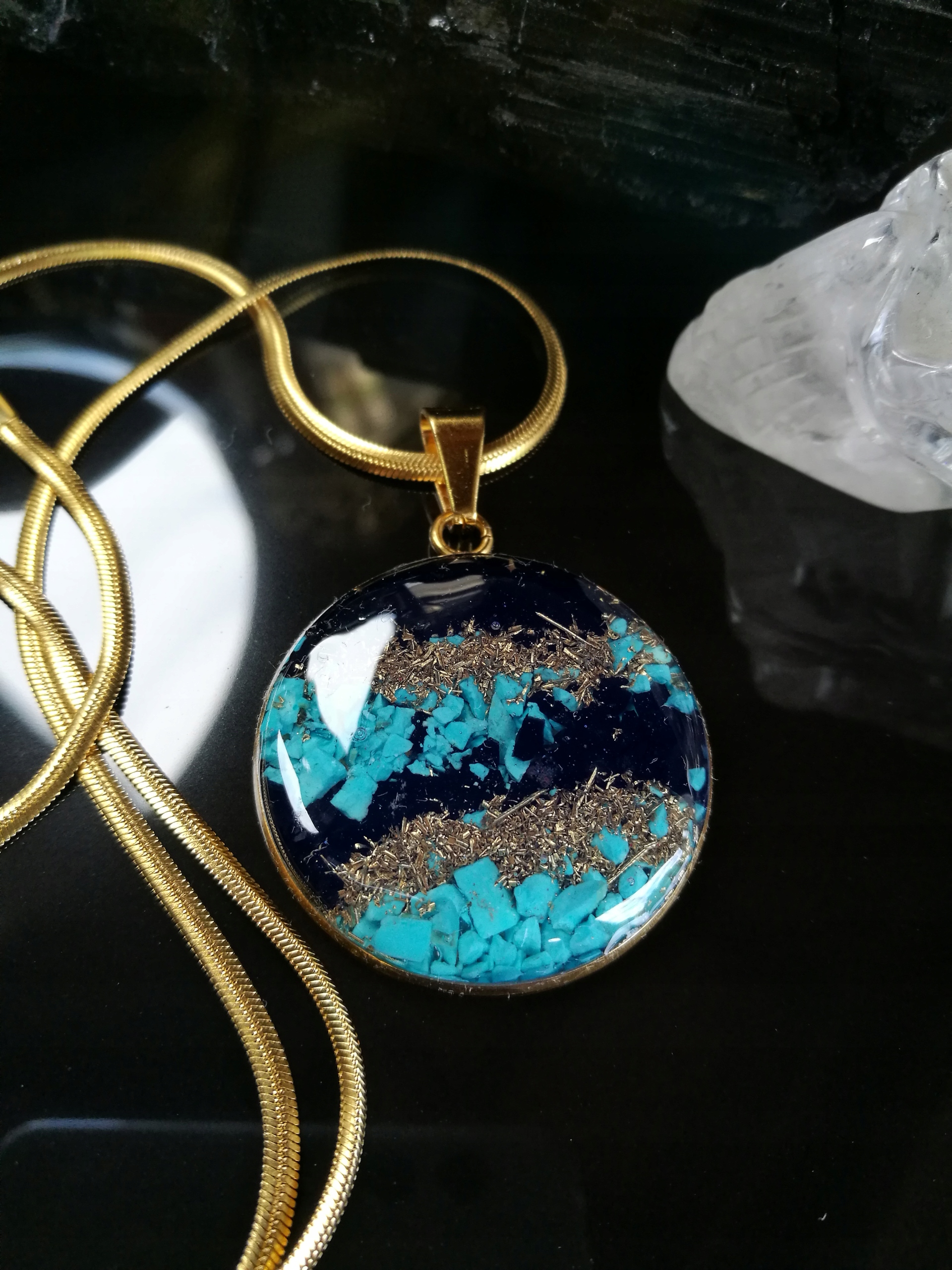 Эксклюзивный оргонит ручной работы, изготовленный по особой технике с ювелирной точностью. Минералы и дополнительные материалы заключены в органическую смолу.