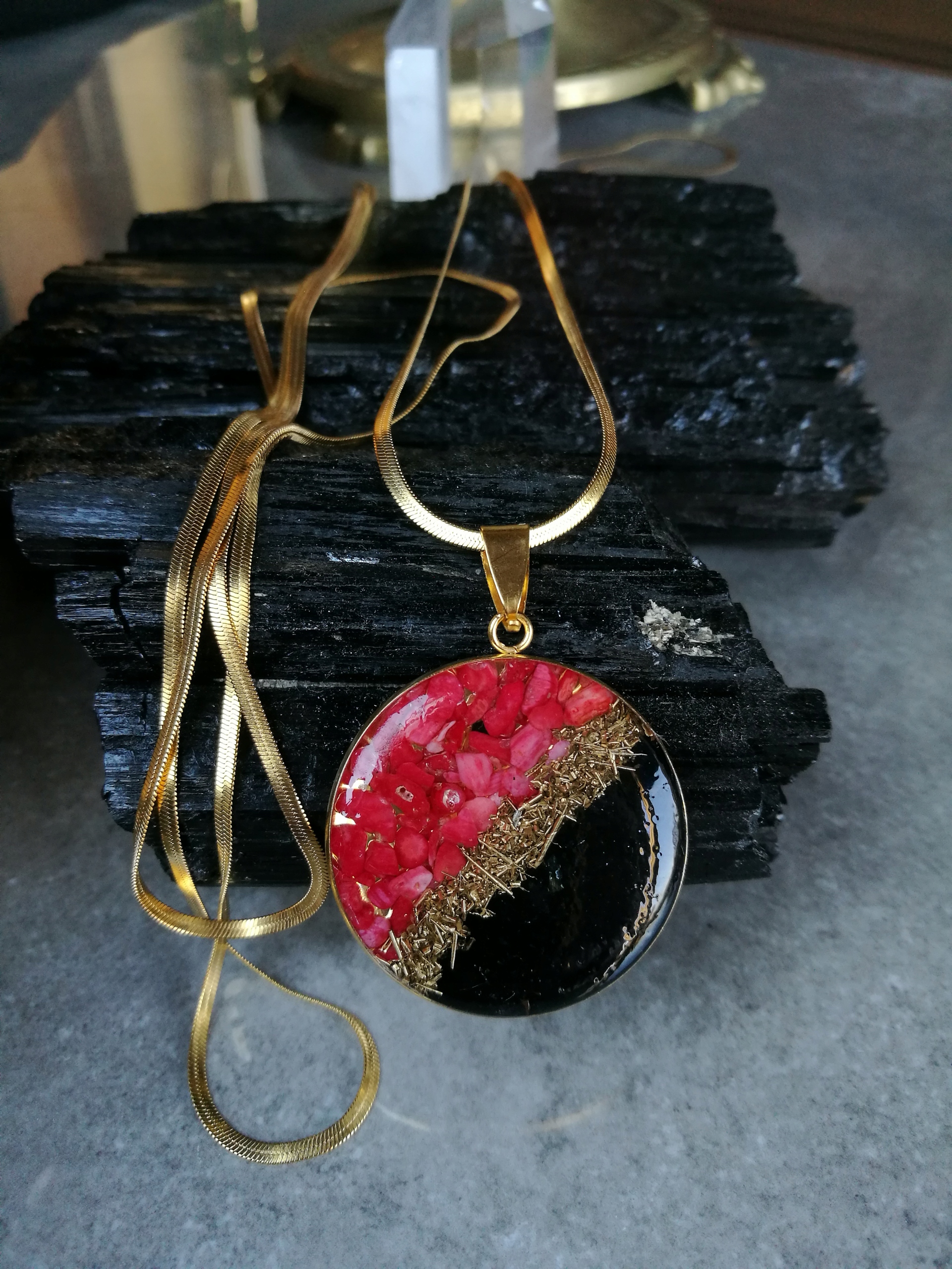 В этом аукционе я представляю оргонит нацепочке из позолоченной нержавеющей стали 18К.