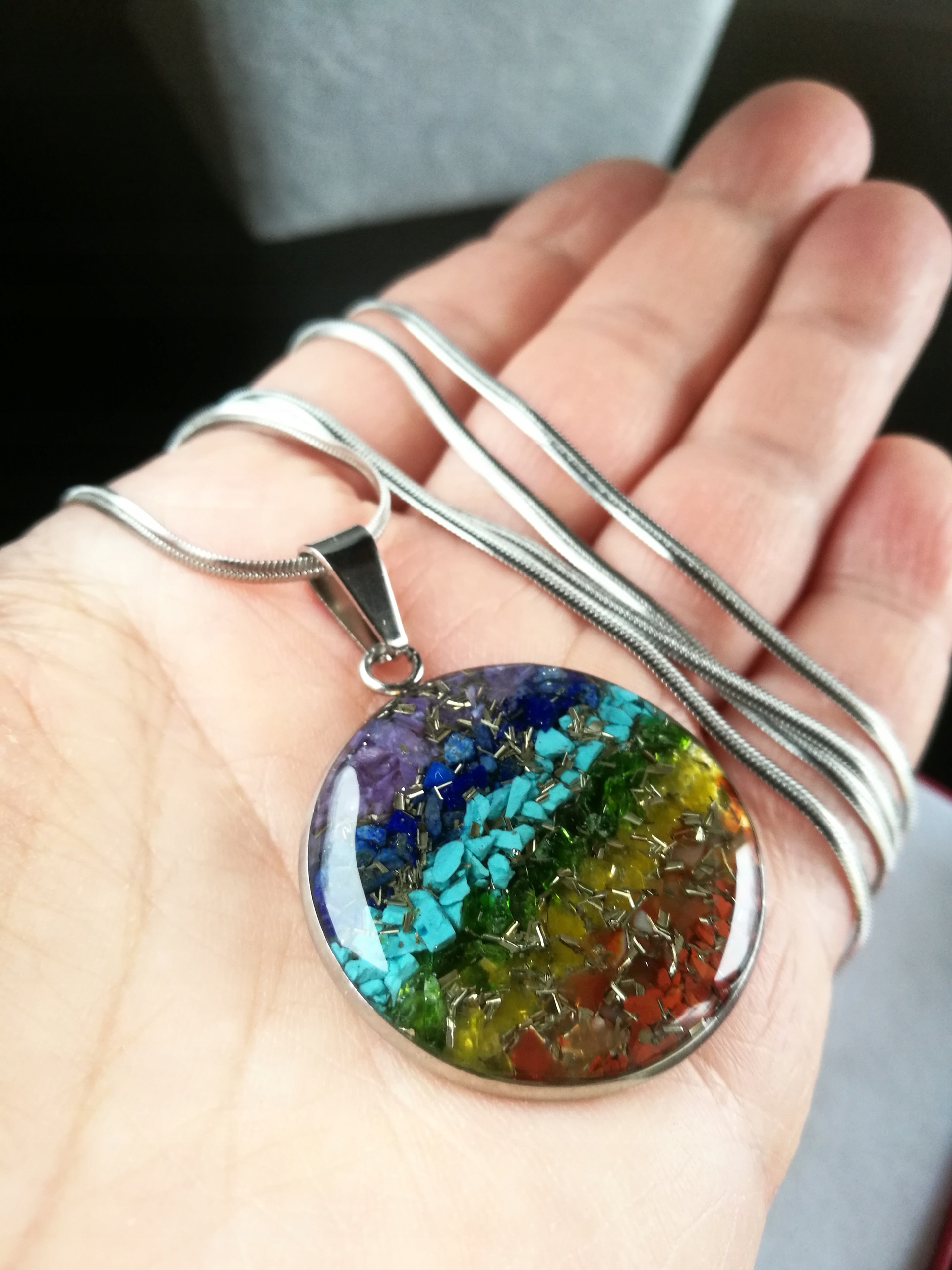 - Долговечность кулона - я использую дополнительные меры предосторожности, чтобы оргонит не откололся и не упал на стол. шлифованные.