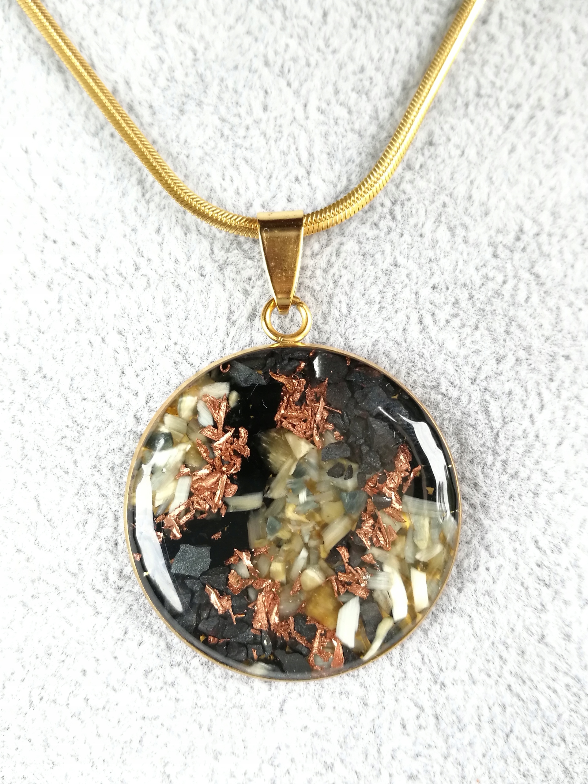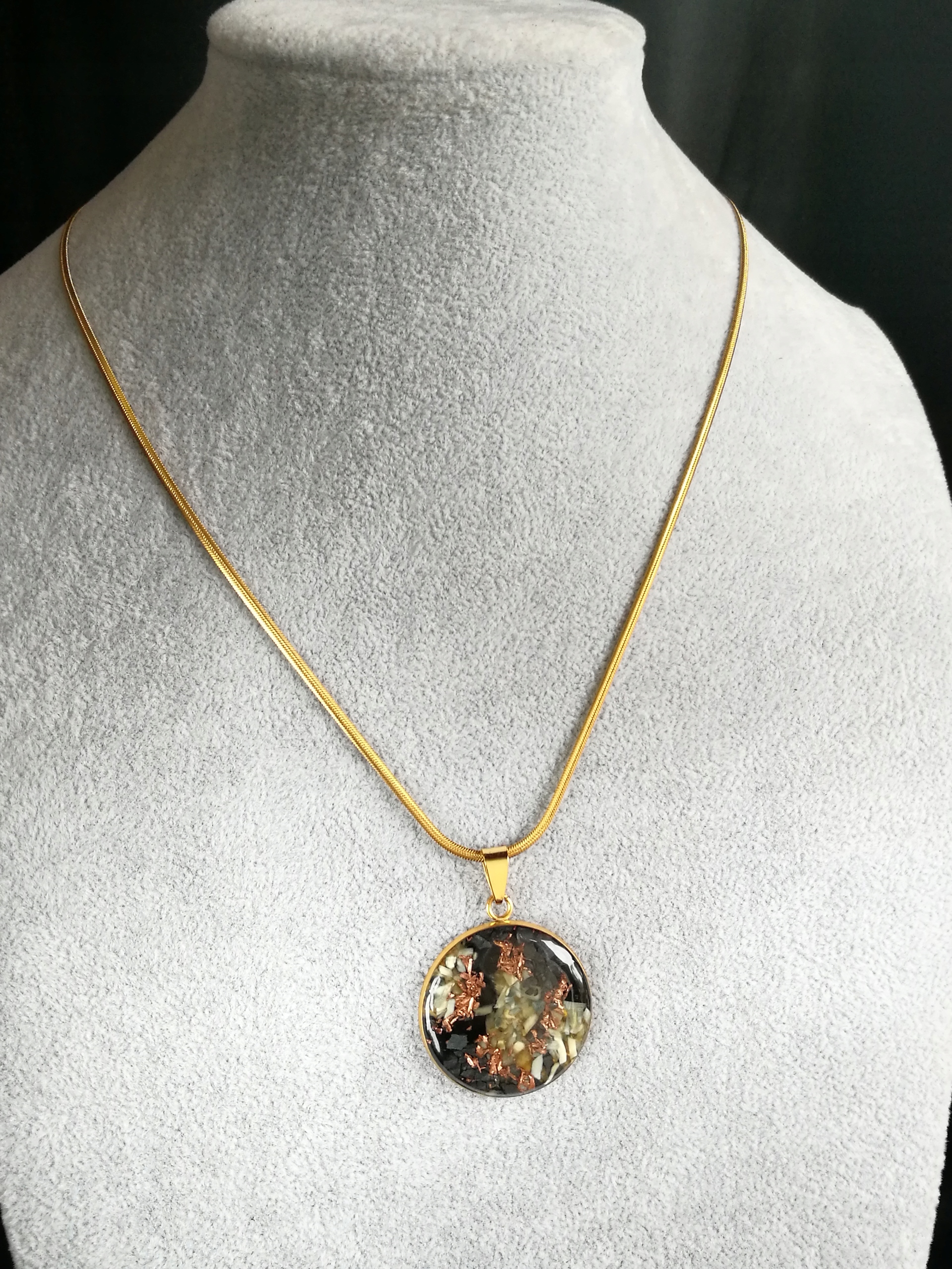 На этом аукционе я представляю оргонит на цепочке из позолоченной хирургической нержавеющей стали К18.