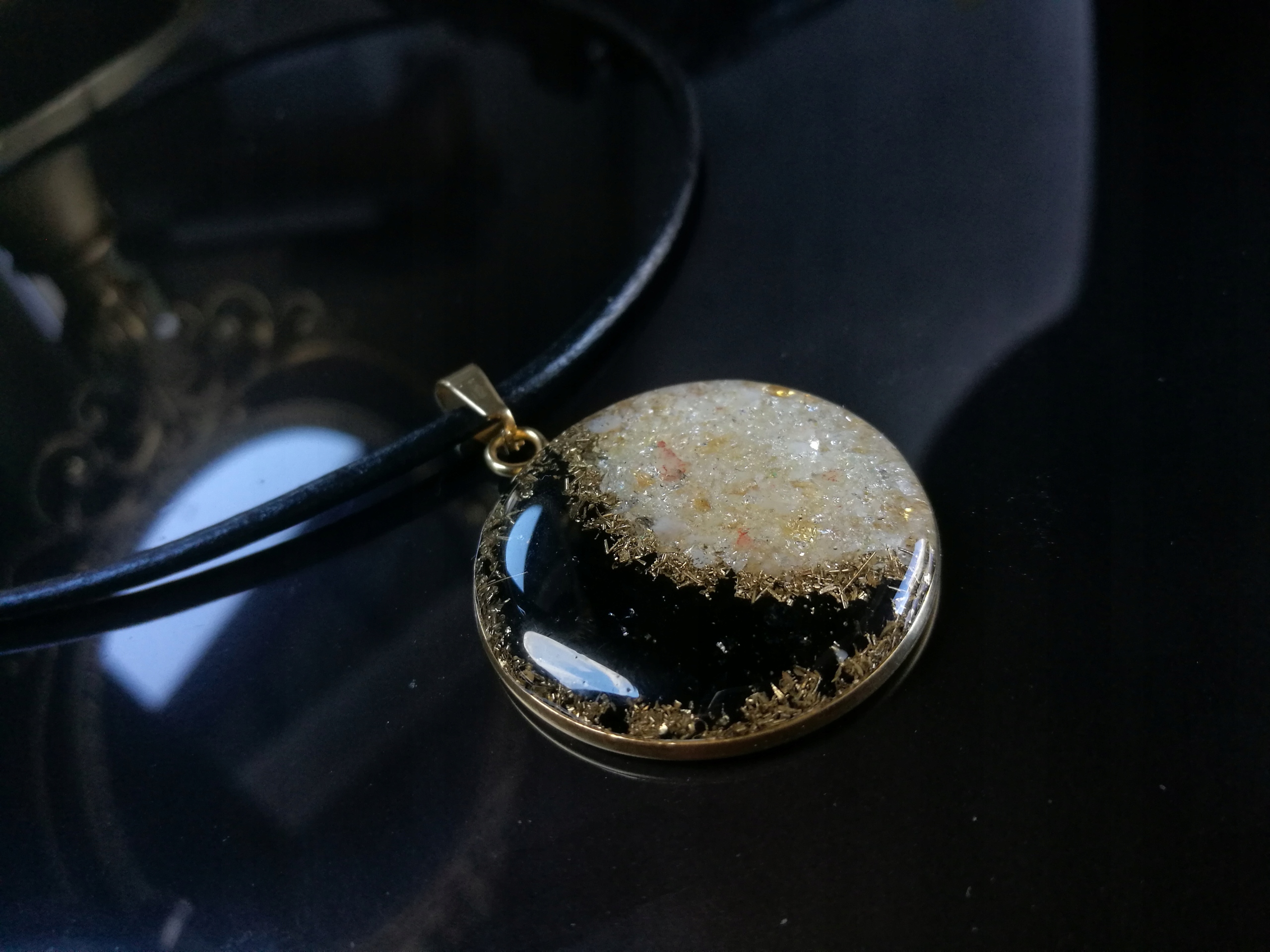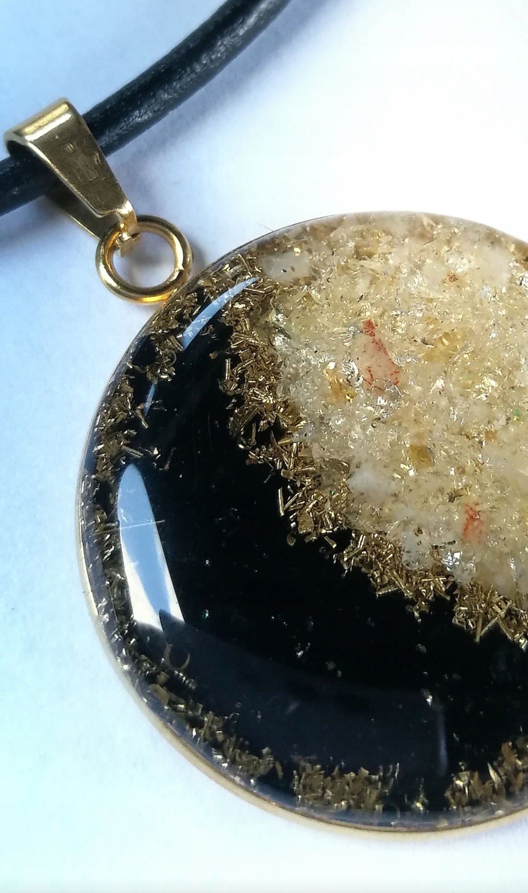 - Долговечность кулона - использую дополнительную защиту от откола и падения оргонита на землю.