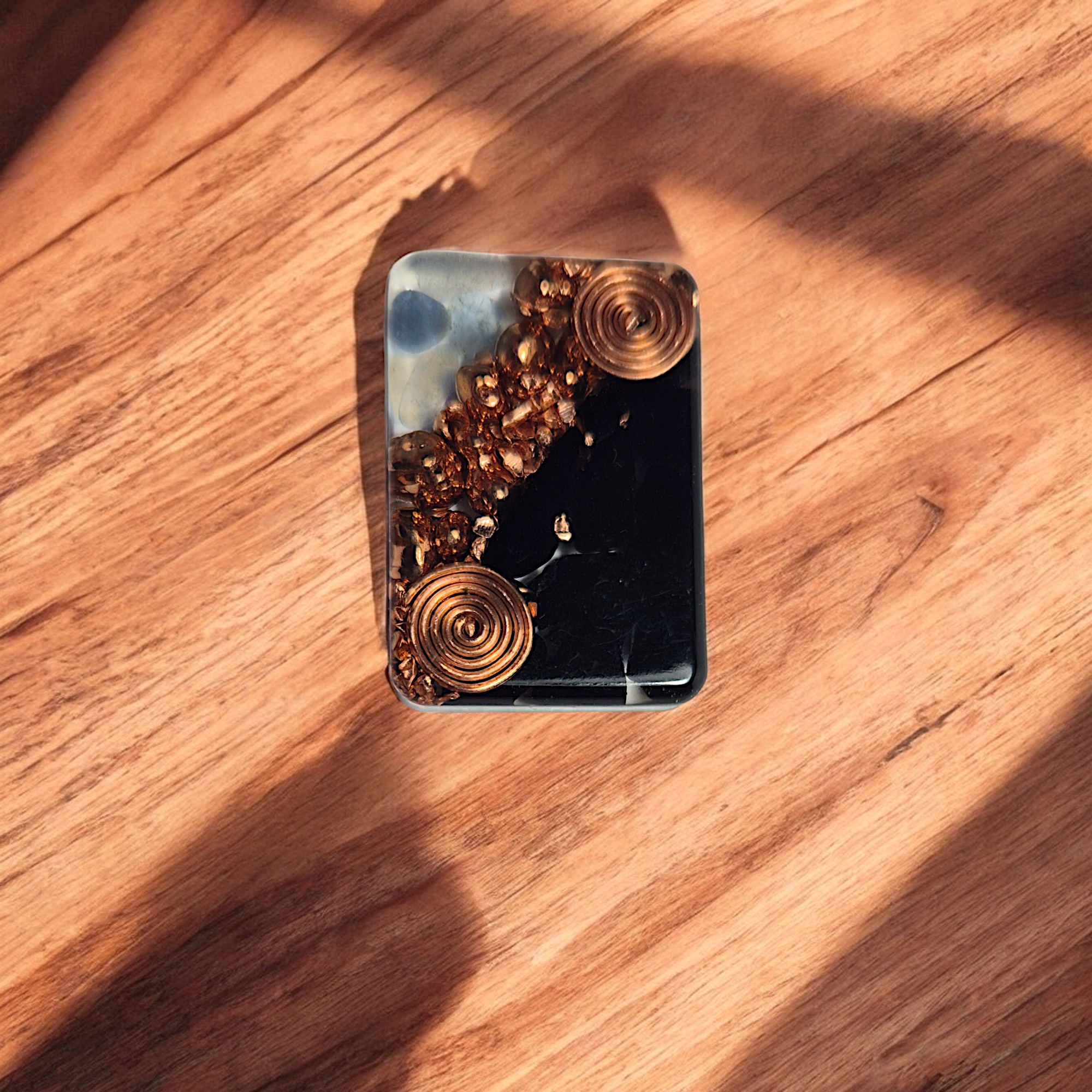Оргонит — гармонизатор энергии и преобразователь отрицательной энергии в положительную >. Это смесь кристаллов, минералов и металлов, заключенных в смолу. Оргонит поглощает отрицательную энергию (ДОР) отдает взамен положительную энергию (ПОР - живительный Оргон). Показанный Оргонит предназначен для крепления, например, к задней части смартфона с помощью двусторонней ленты Tesa, и тщательно разработан для минимизации негативного воздействия электромагнитного излучения (ЭМП). производится устройством. Состав Оргонита создает мощную смесь энергетических элементов.