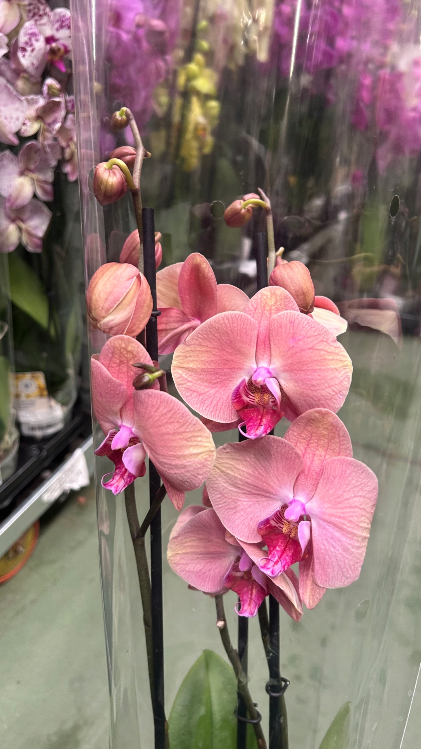 Живая орхидея JMP 60см 2 побега с декоративным горшком на подарок, микс цветов