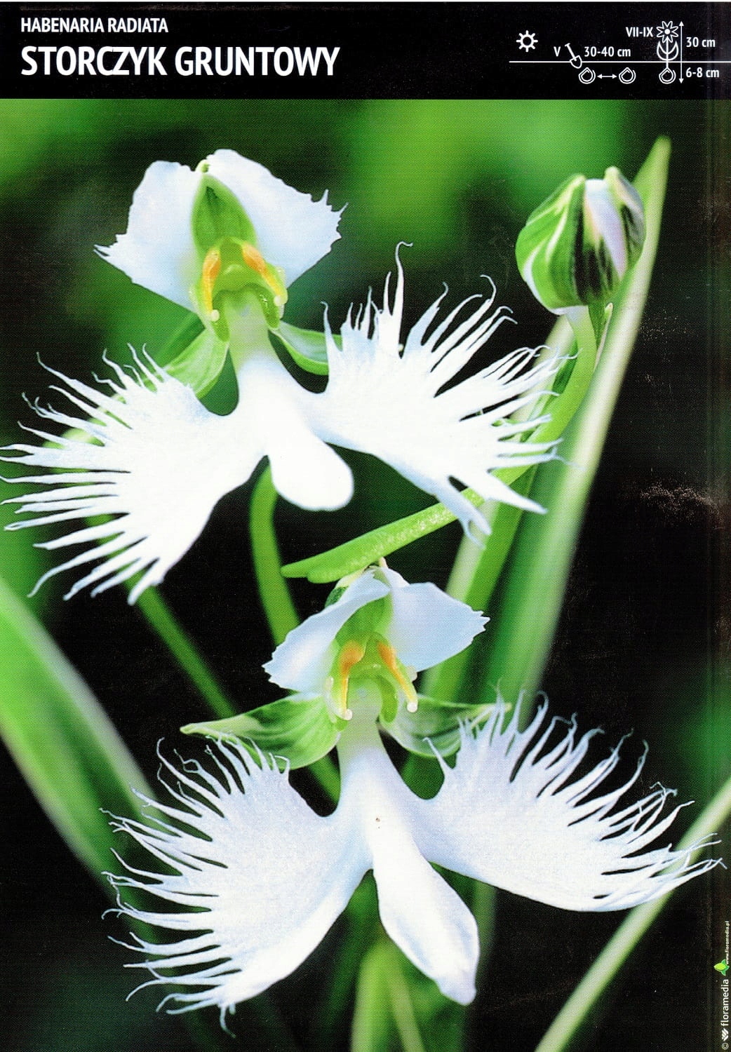 Наземная орхидея 'Habenaria Radiata' (Белая цапля) вырастает примерно до 30 см в высоту и дает необычные белые цветы. Цветы чем-то похожи на горшечные орхидеи, но их боковые лепестки зазубрены и похожи на летящую птицу. Такая орхидея украсит любую клумбу!