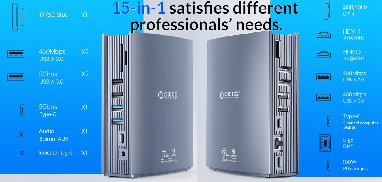 Орико CDH-15N Dection Station 15 в 1 многофункциональный USB-C Aluminum