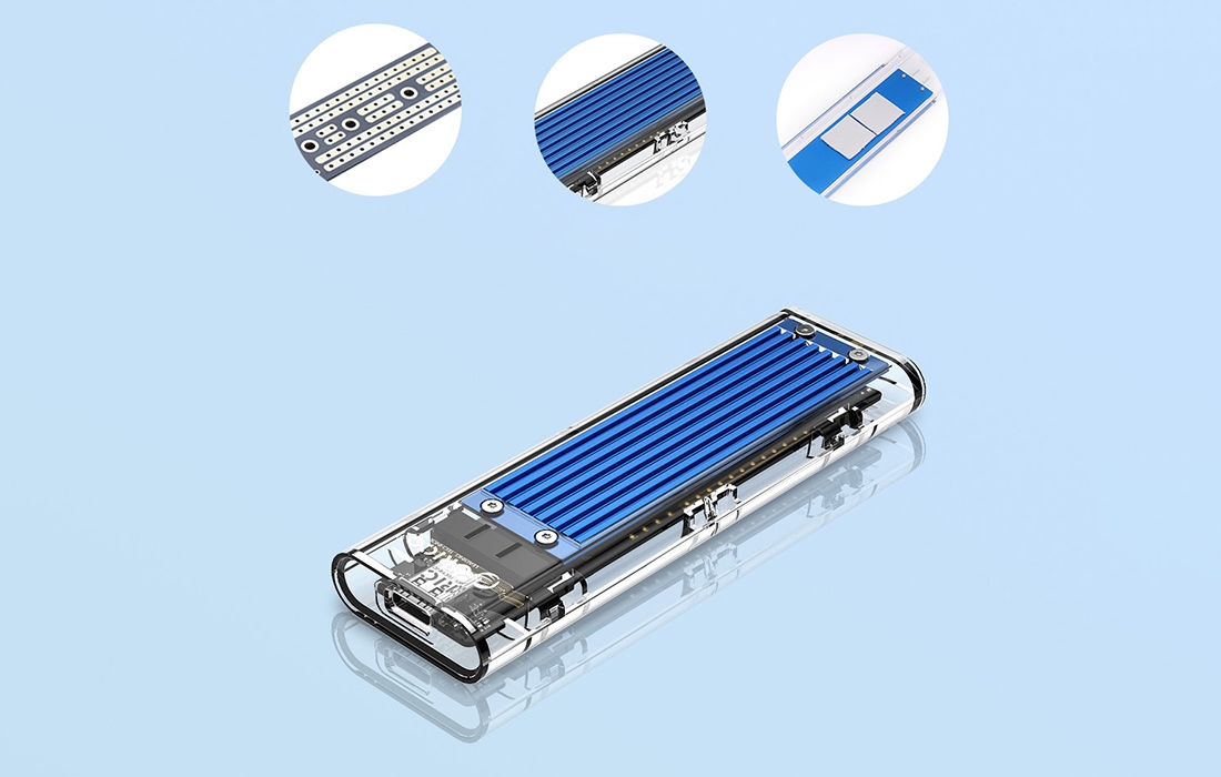 Маленький корпус для жесткого диска M.2 SSD от Orico легко собрать, и он чрезвычайно долговечен. Он обеспечивает скорость передачи данных до 10 Гбит/с и поддерживает емкость до 2 ТБ. Также его отличает широкая совместимость. Легкий и удобный – он всегда будет под рукой. Прозрачный корпус удобен в использовании и значительно облегчает идентификацию диска внутри.