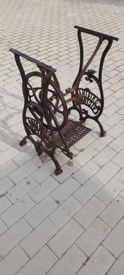 Предмет продажи — старая чугунная основа для швейной машины ORIGINAL VICTORIA. Очень красивый узор. Надписи с логотипом компании по бокам. Он имеет все 4 колеса в нижней части, полностью укомплектован, в хорошем состоянии, нуждается в ремонте и перекраске. Только коллекция, не отправляю.