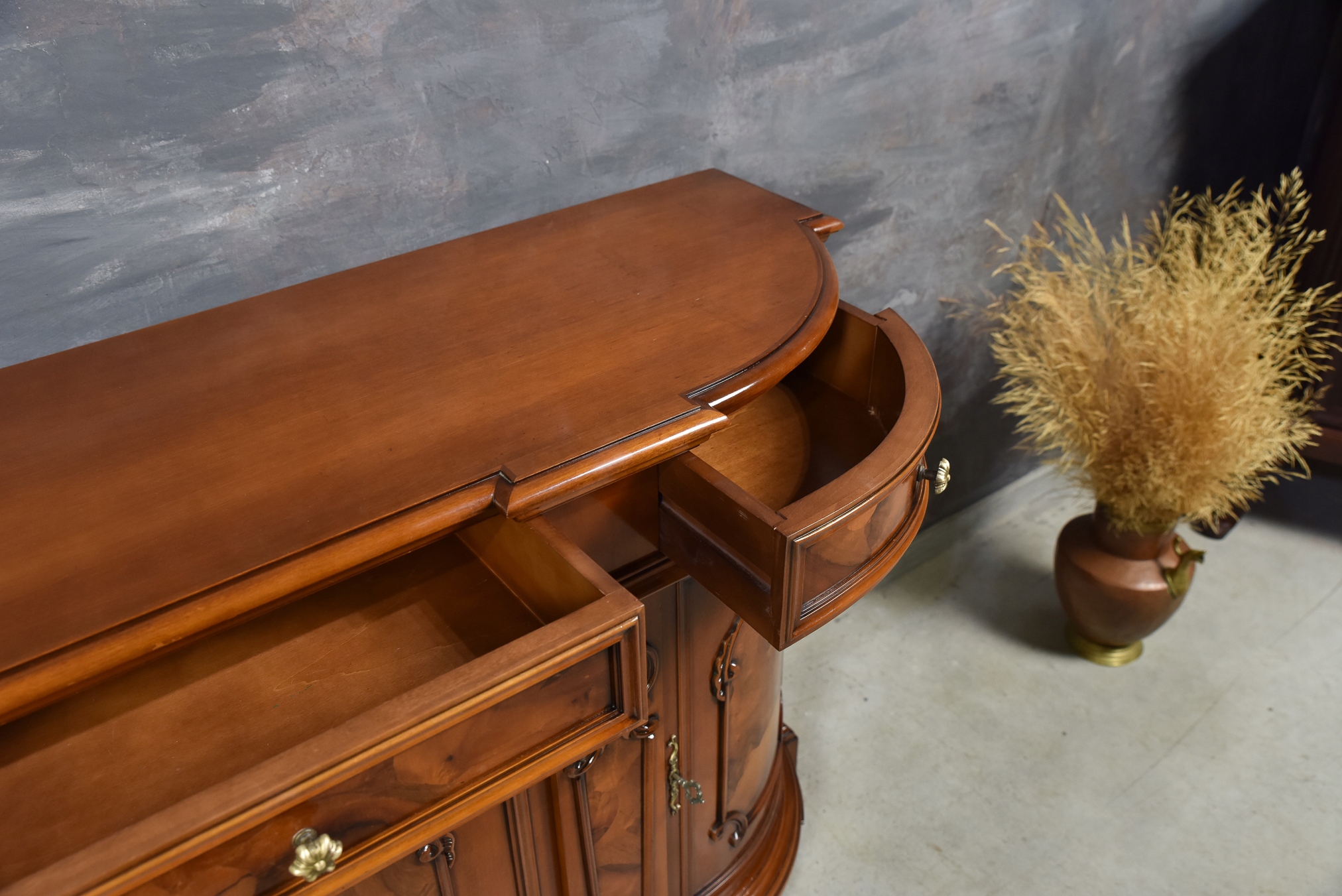Этот красивый комод был создан во второй половине 20 -го века и изготовлен из твердой ореховой древесины, что придает ему уникальный характер и элегантность. Красивая древесная конструкция дает комоду уникальный характер.