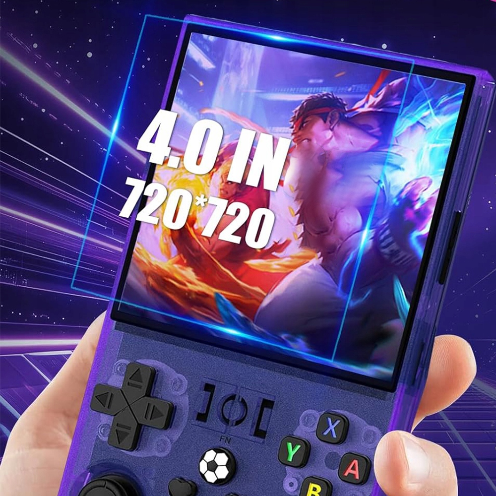 R36MAX оснащен 4-дюймовым IPS-экраном с разрешением 720×720, обеспечивающим яркие цвета RGB и необыкновенное визуальное восприятие. Отличная обзорность и детализация изображения гарантируют удовольствие от игры в любимые игры.
