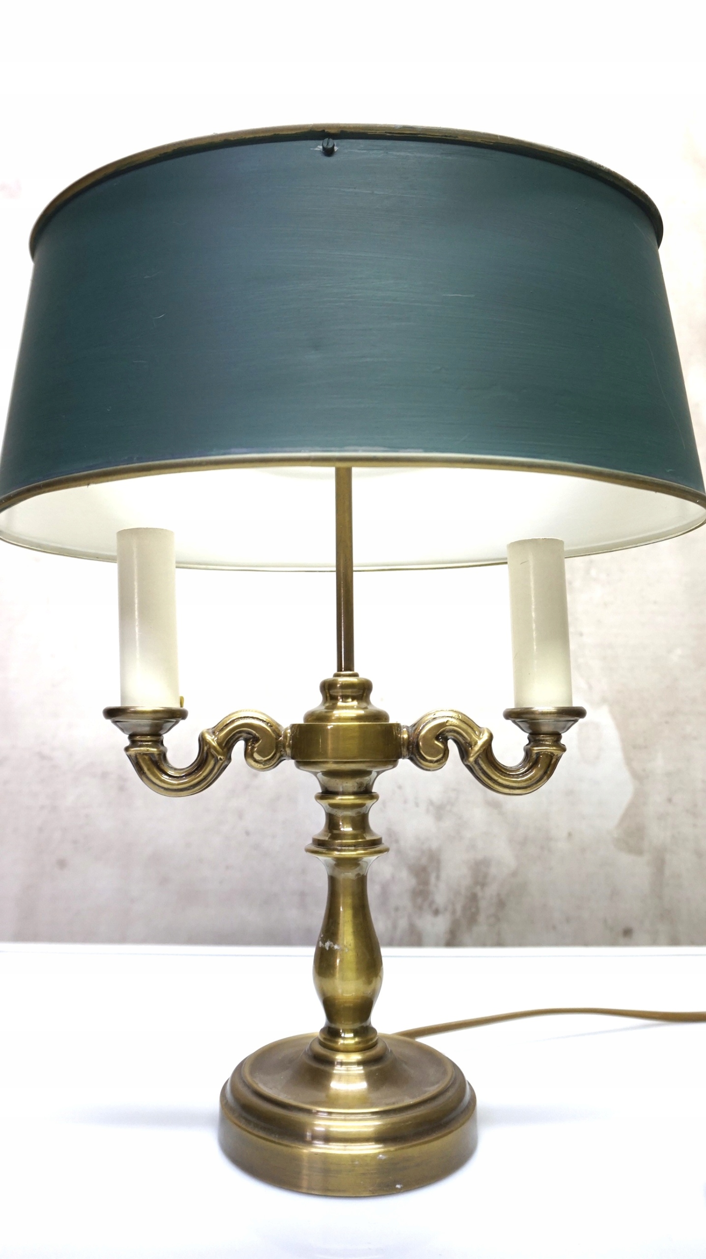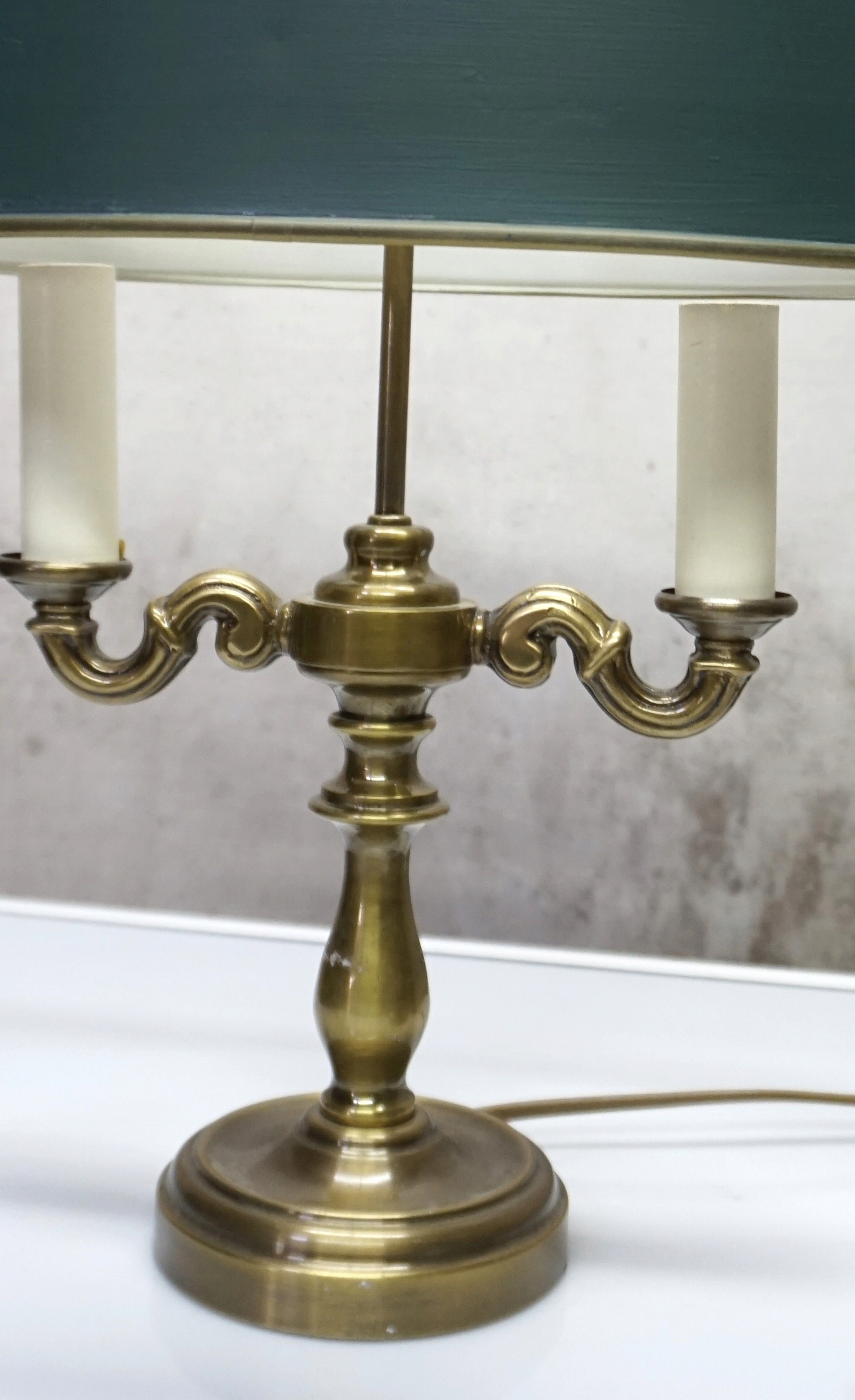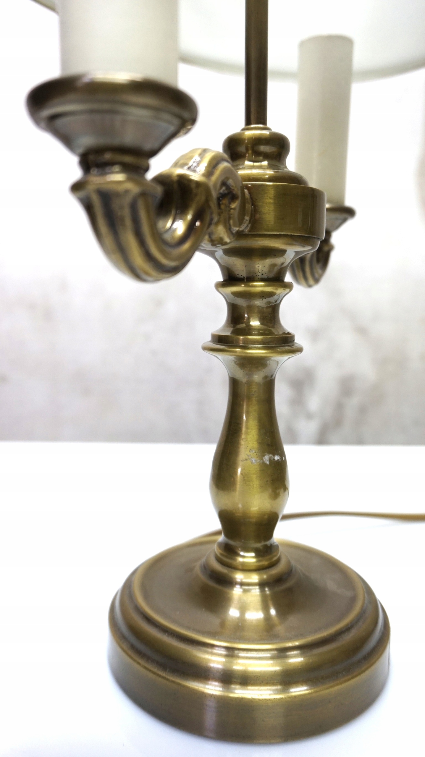 Лампа имеет латунную основу в форме подсвечника - Candelabra