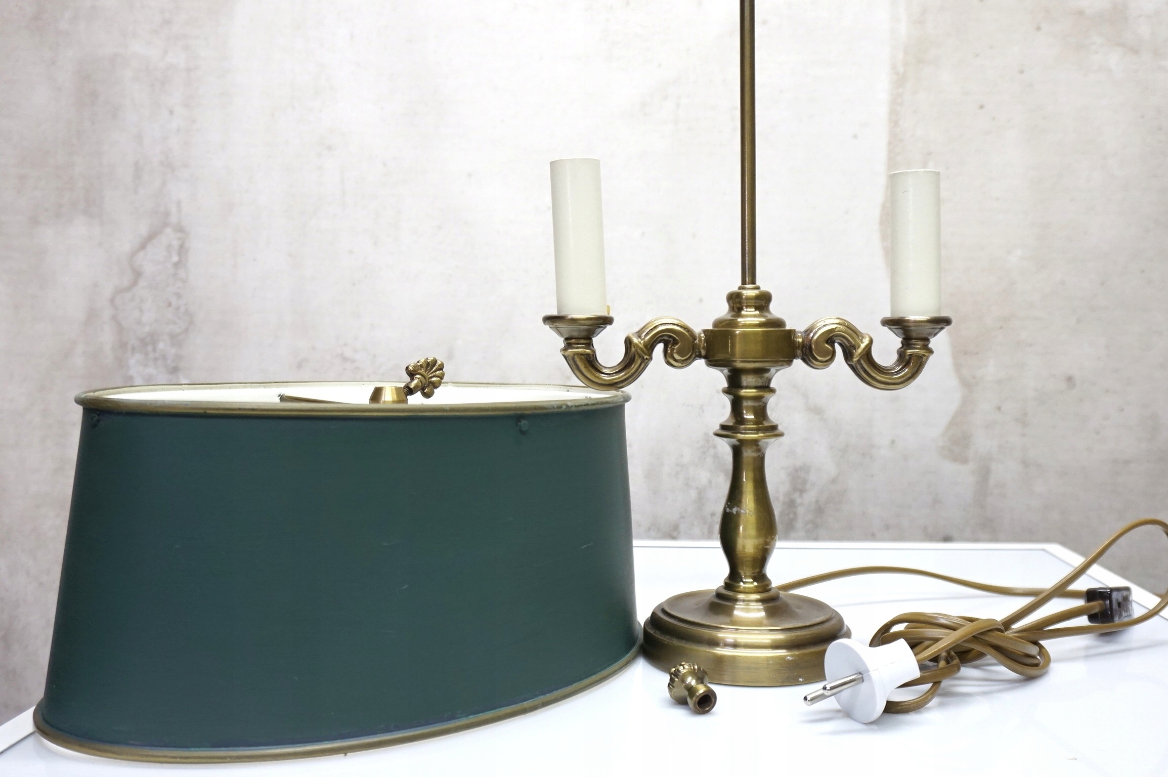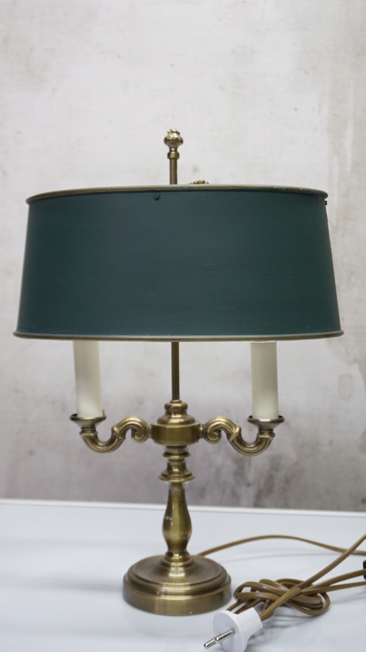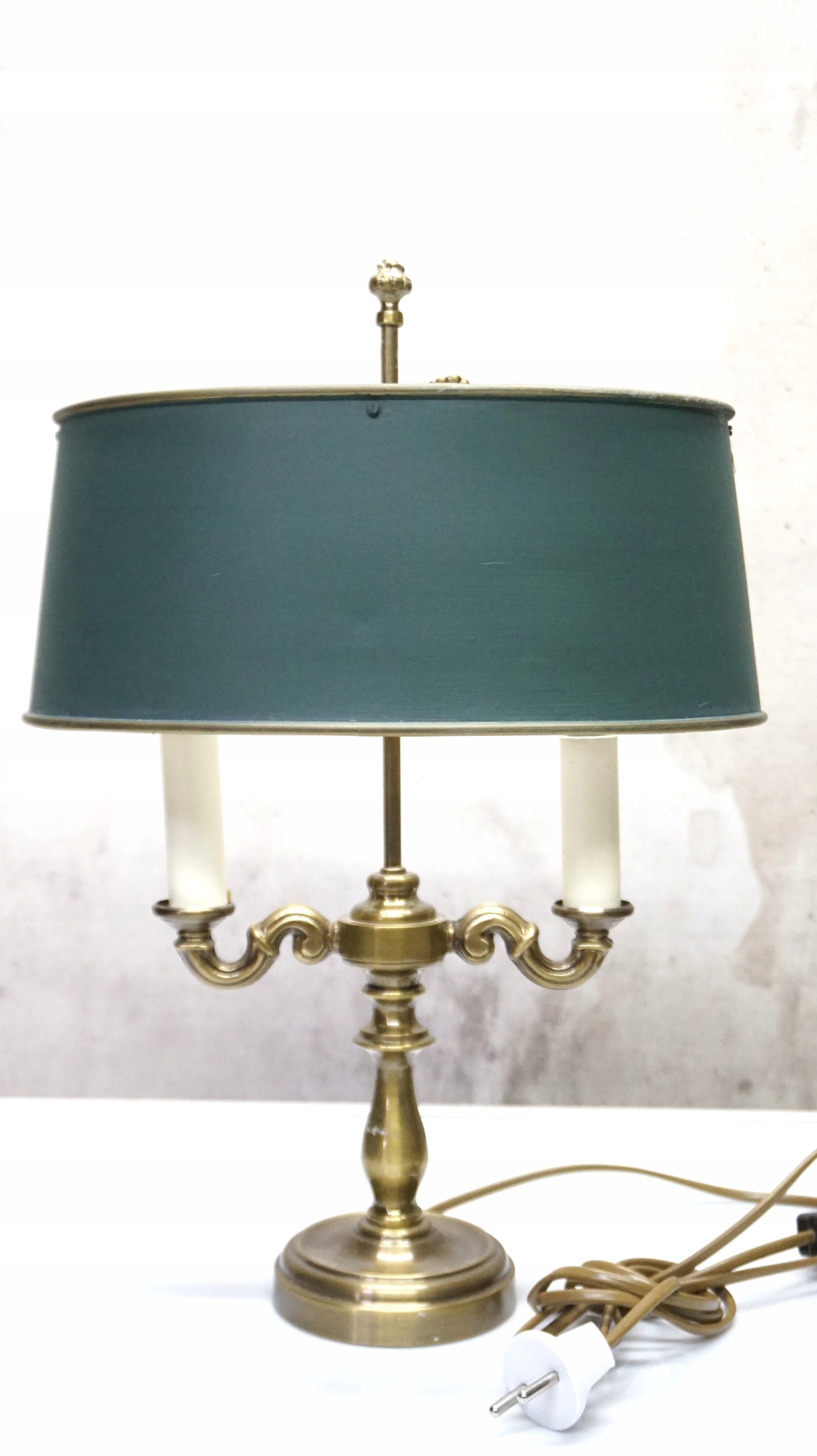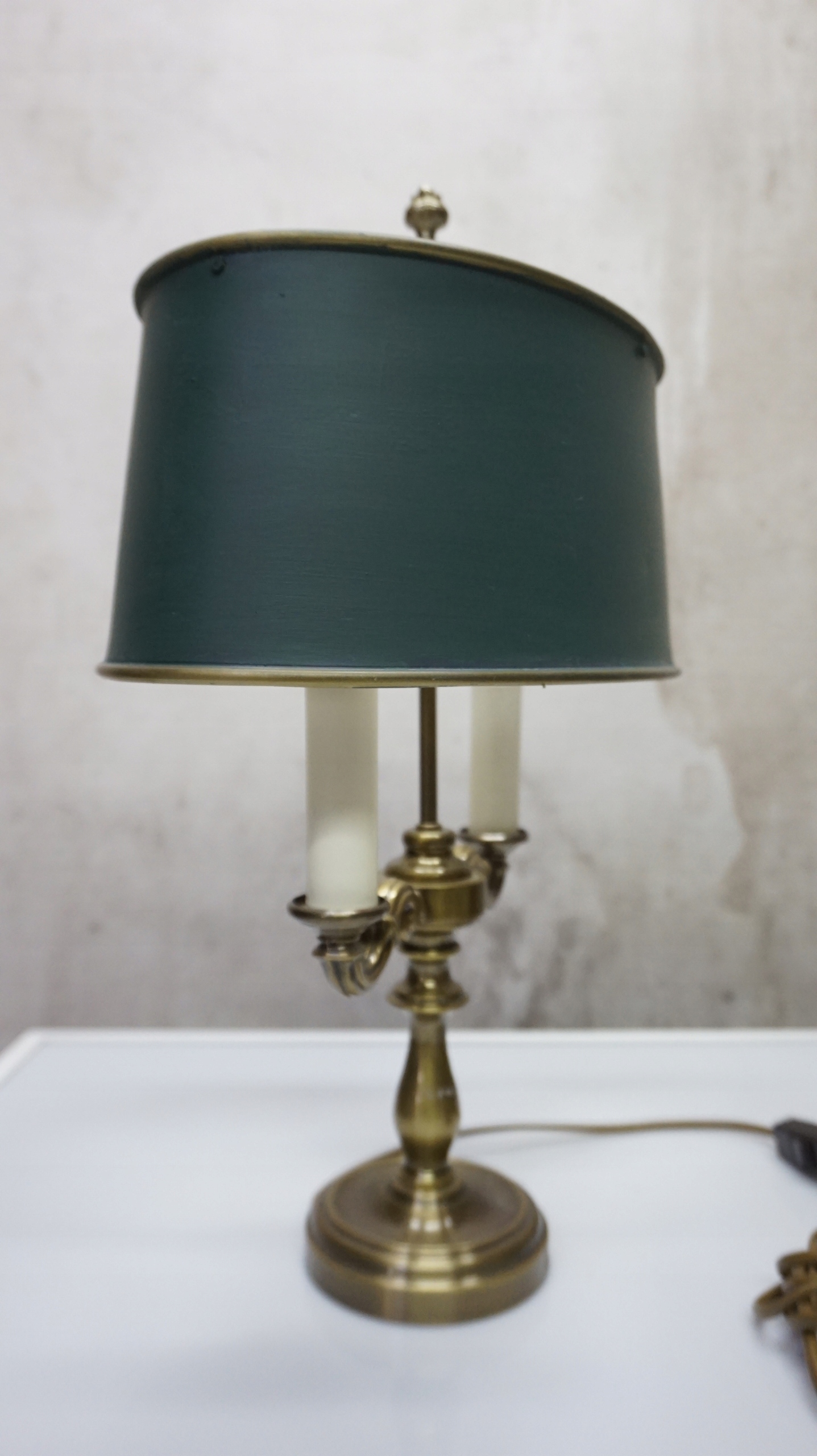 Лампа имеет латунную основу в форме подсвечника - Candelabra