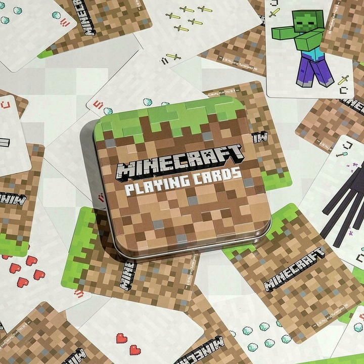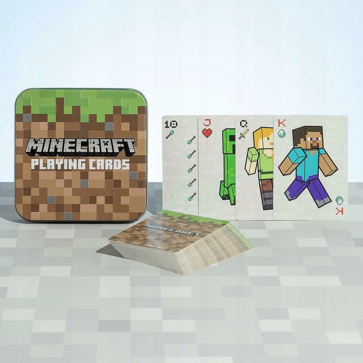 - Карты + элегантная металлическая упаковка с логотипом Minecraft.