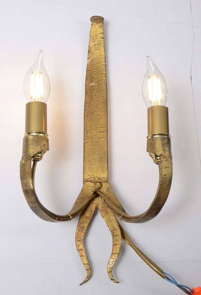 Объект аукциона- невероятно оригинальная старая настенная лампа- подсвечник из Испании 1950-х годов. Настенная лампа изготовлена из кованого металла в темной шлюпе. Место, где настенная лампа прикреплена к стене, имеет простую форму. Вставленные в центре рук выходят изнутри, чье сильное преимущество - обычные рамки для декоративной лампочки, например, Тип "свечи". Удивительная точность, забота о каждой детали, простоте и необычной форме делают настенную лампу настоящей уникальной.